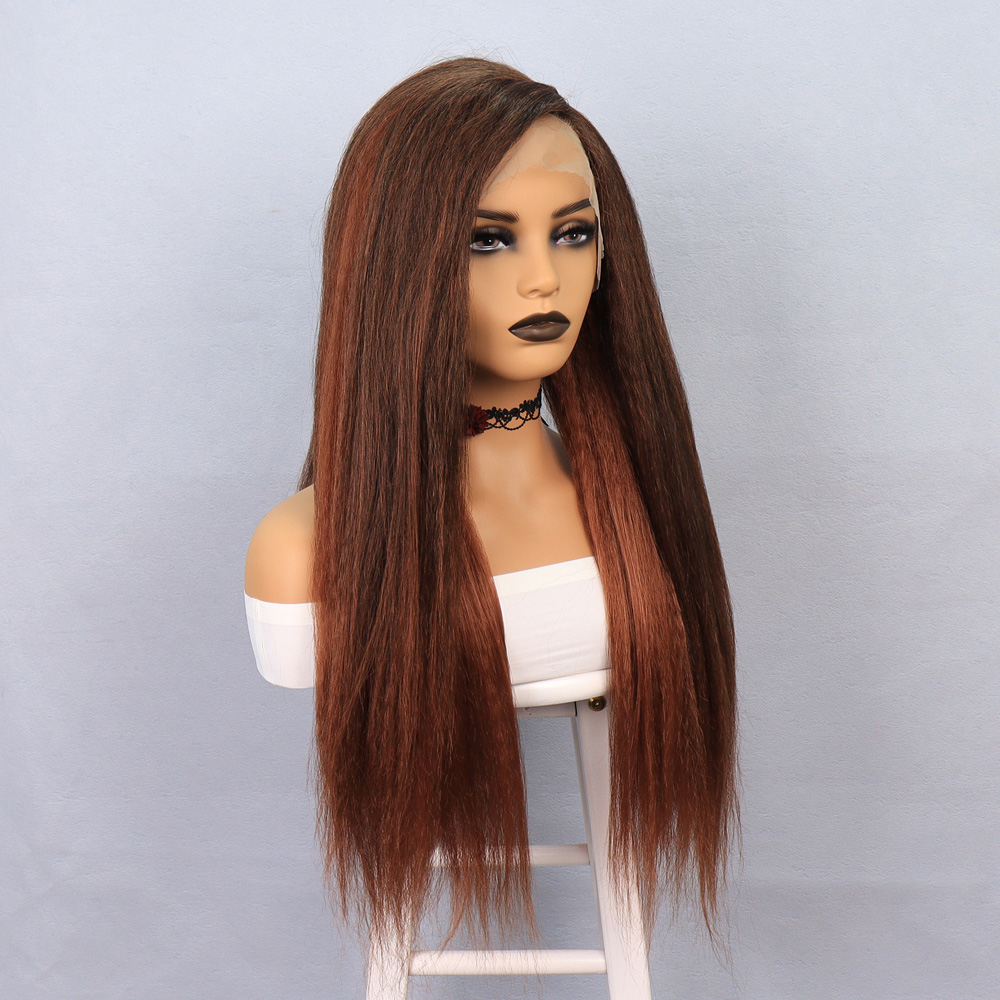 Kızıl Kahve Fiber Sentetik Geniş Dalgalı Tül Peruk