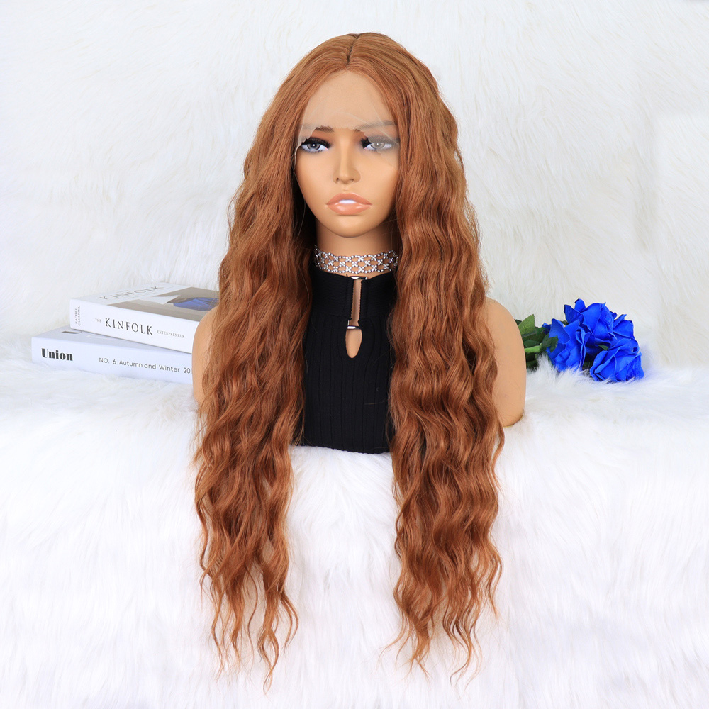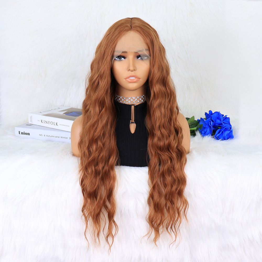 Kızıl Kahve Fiber Sentetik Geniş Dalgalı Tül Peruk