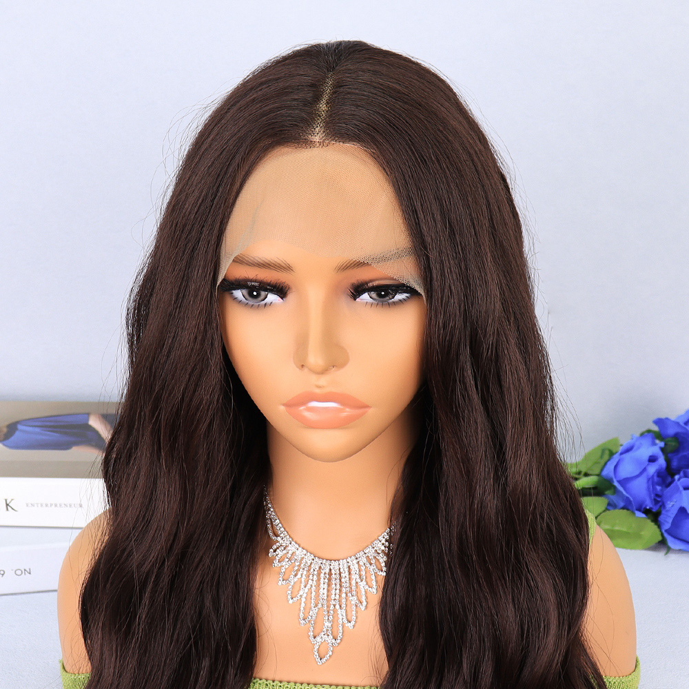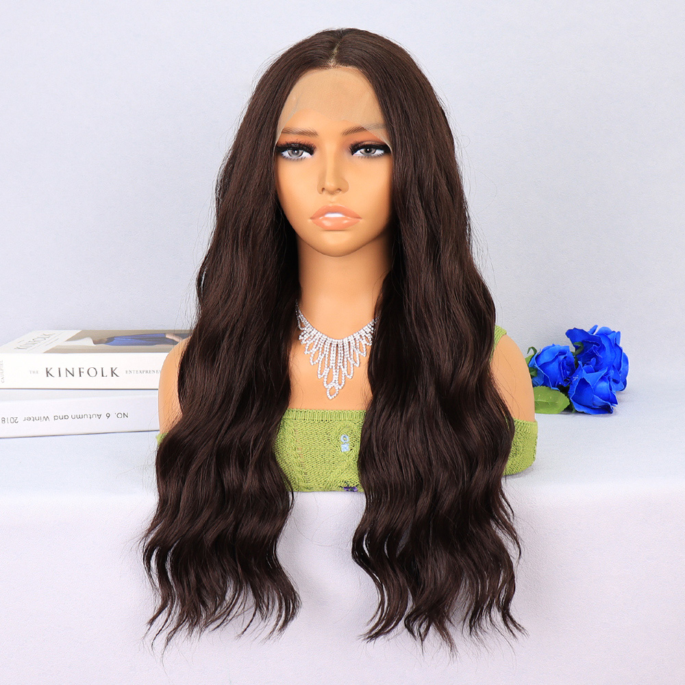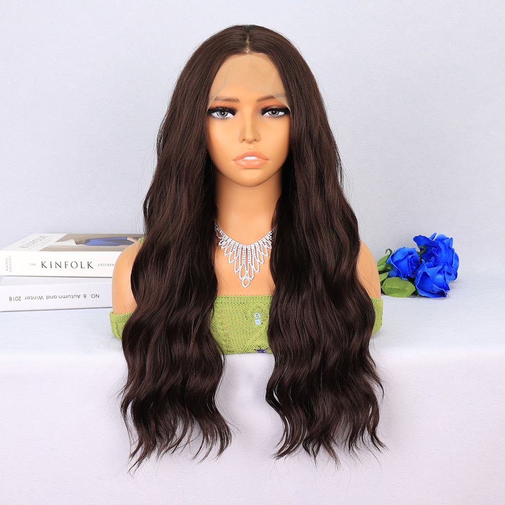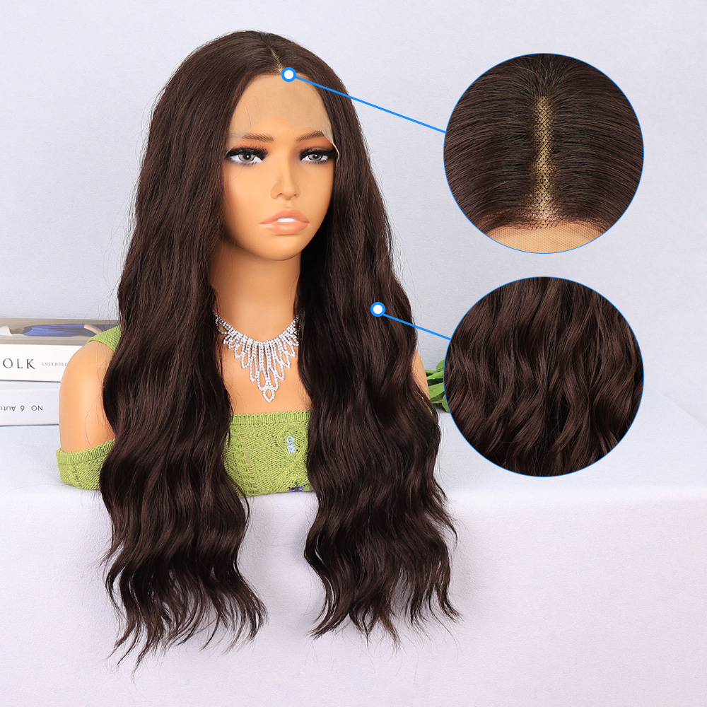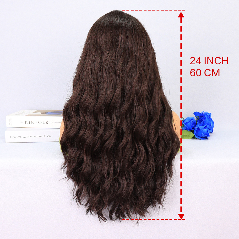 Koyu Kumral Ekstra Uzun Fiber Sentetik Dalgalı Tül Peruk