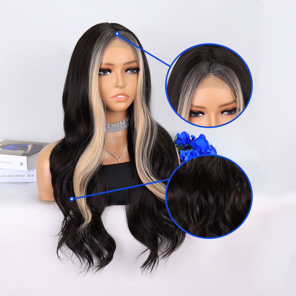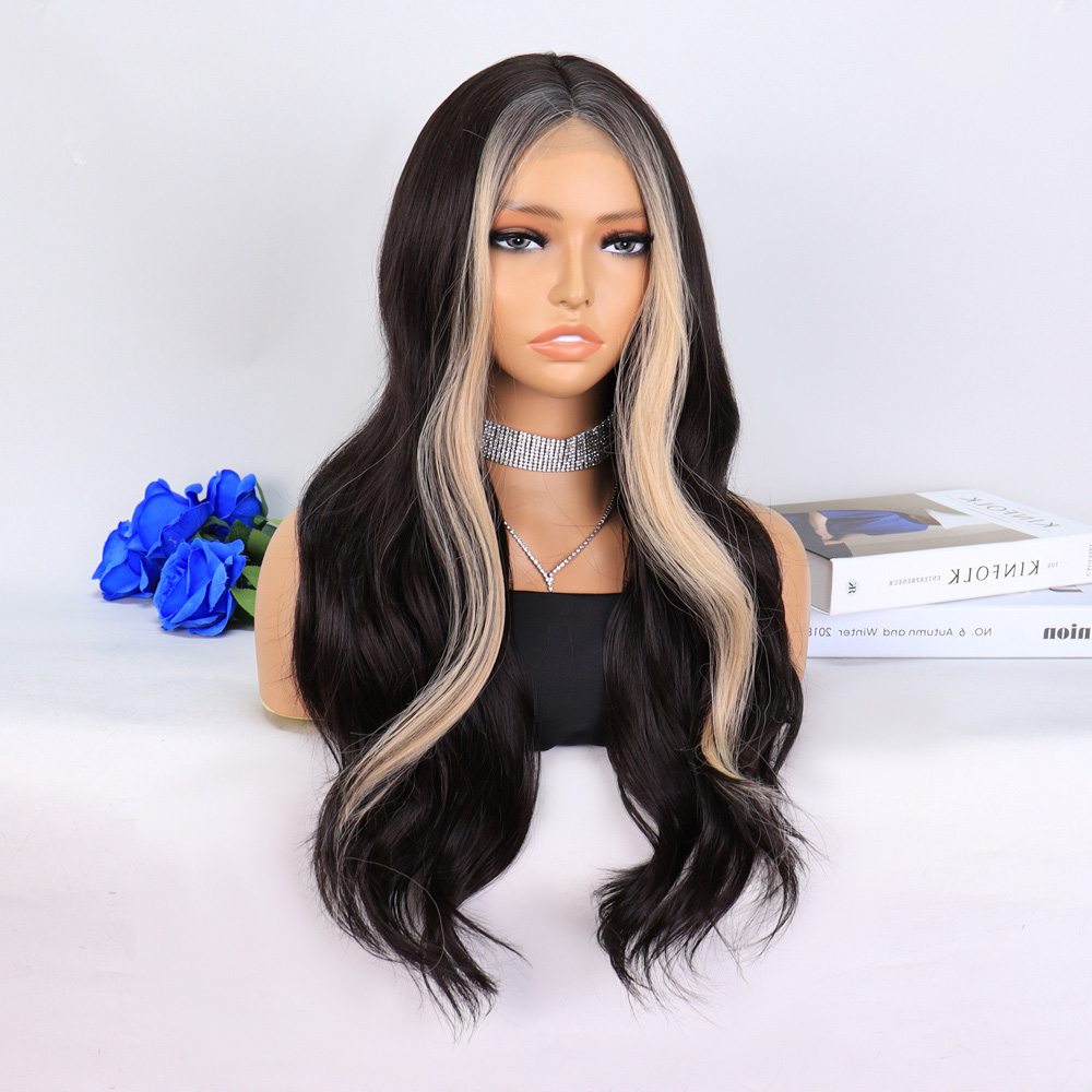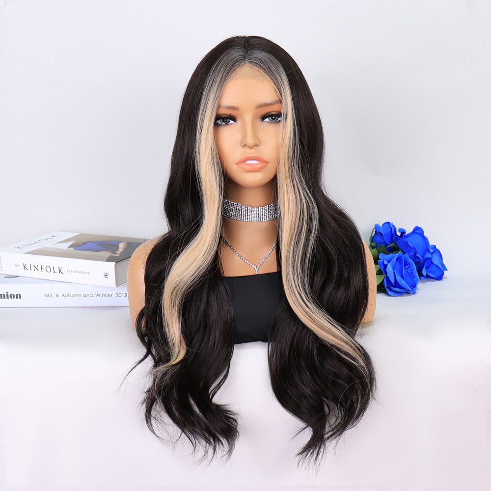 Perçemli Uzun Su Dalgası Fiber Sentetik Peruk- Ombre ve Röfleli
