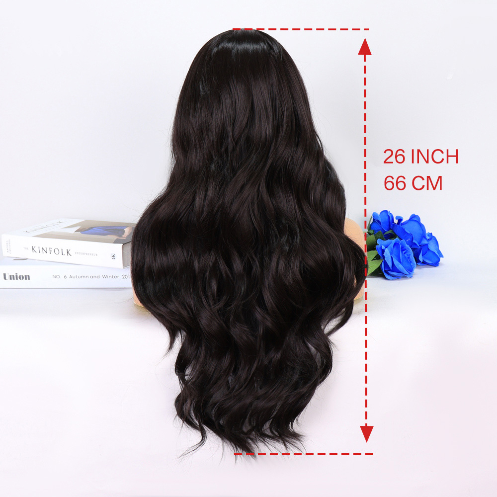 Koyu Kumral Ekstra Uzun Fiber Sentetik Dalgalı Tül Peruk