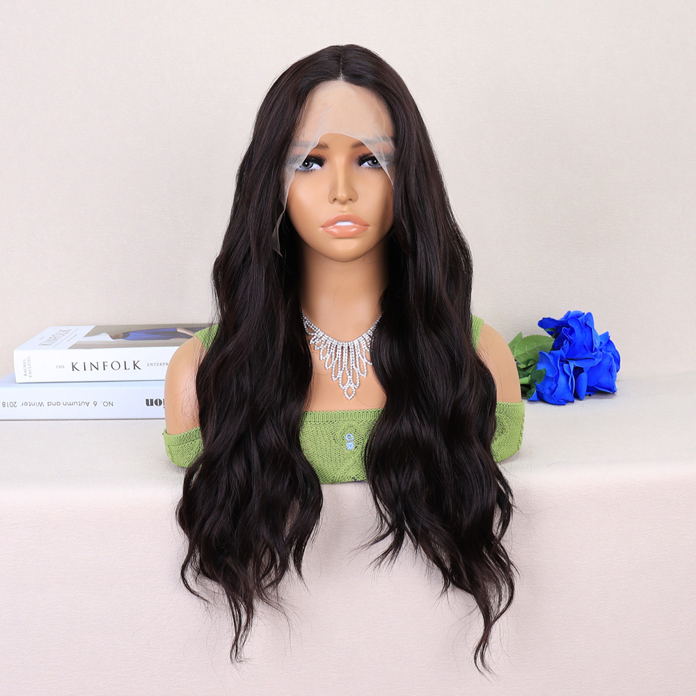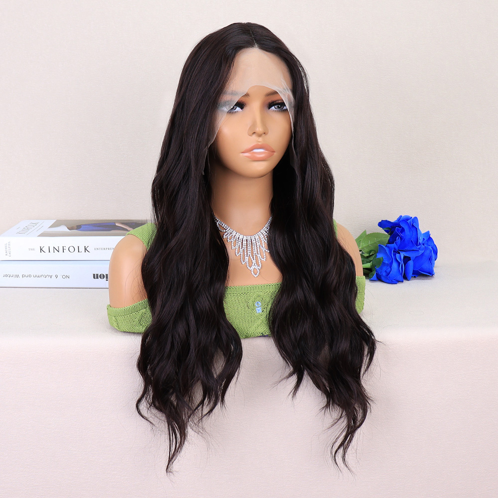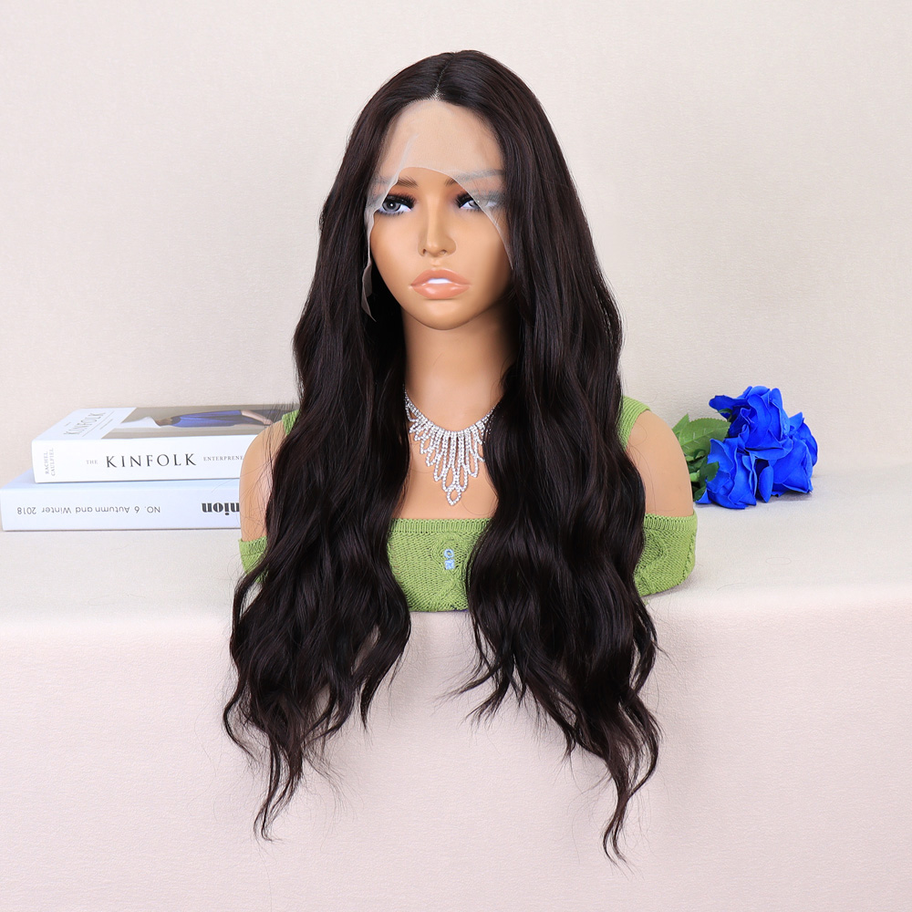 Koyu Siyah Su Dalgalı Fiber Sentetik Tül Peruk