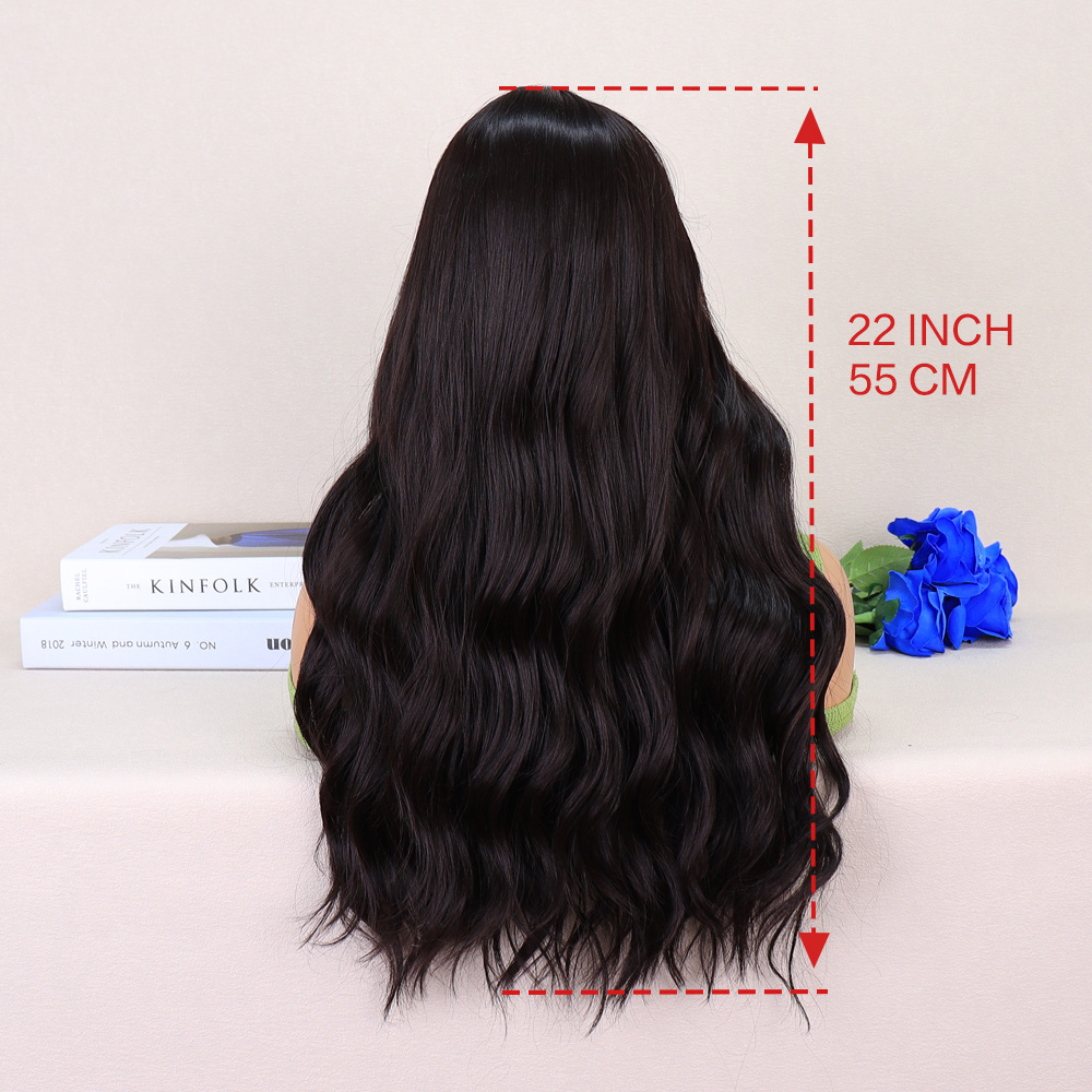 Koyu Kumral Ekstra Uzun Fiber Sentetik Dalgalı Tül Peruk