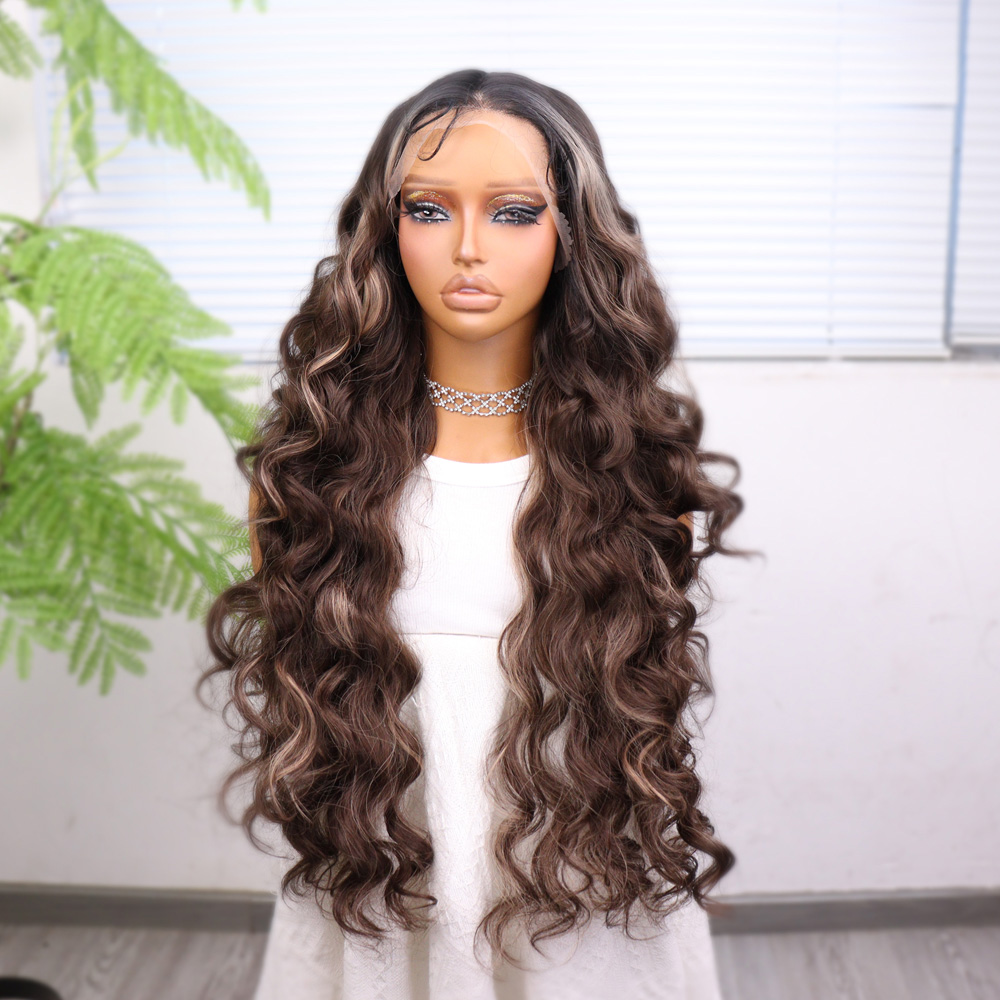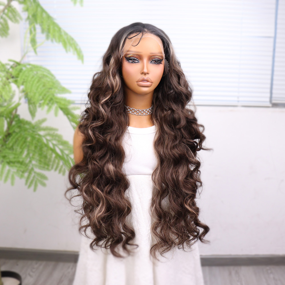 Perçemli Uzun Su Dalgası Fiber Sentetik Peruk- Ombre ve Röfleli