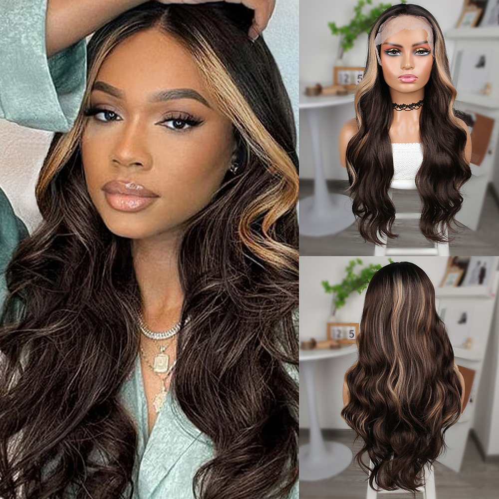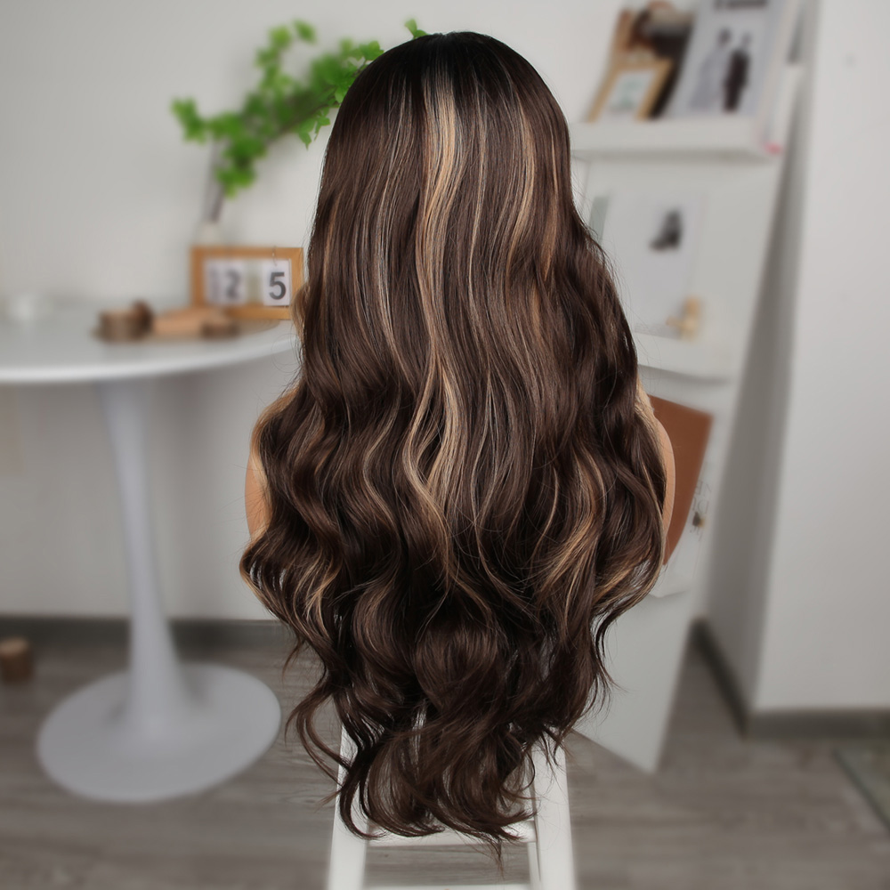 Perçemli Uzun Su Dalgası Fiber Sentetik Peruk- Ombre ve Röfleli