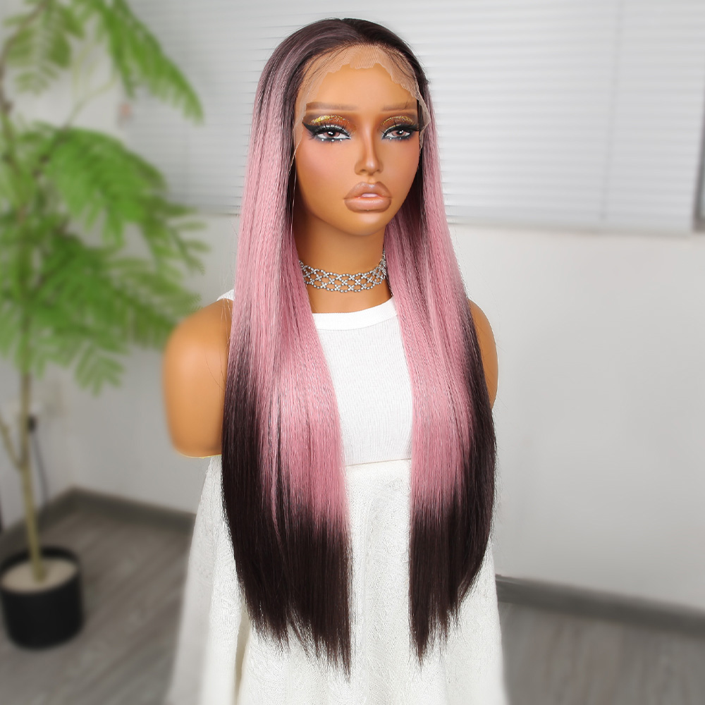 Perçemli Uzun Su Dalgası Fiber Sentetik Peruk- Ombre ve Röfleli