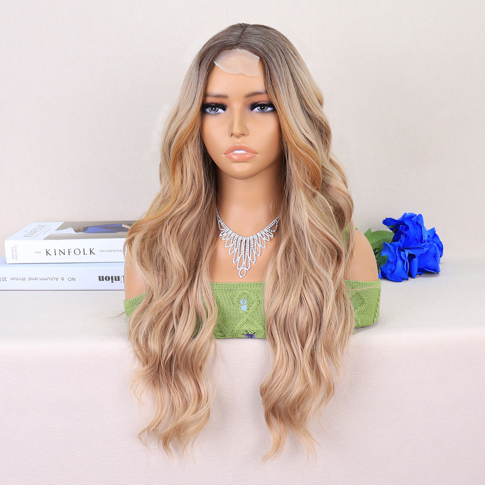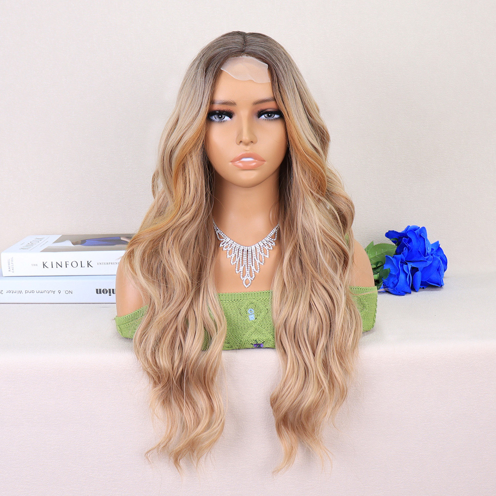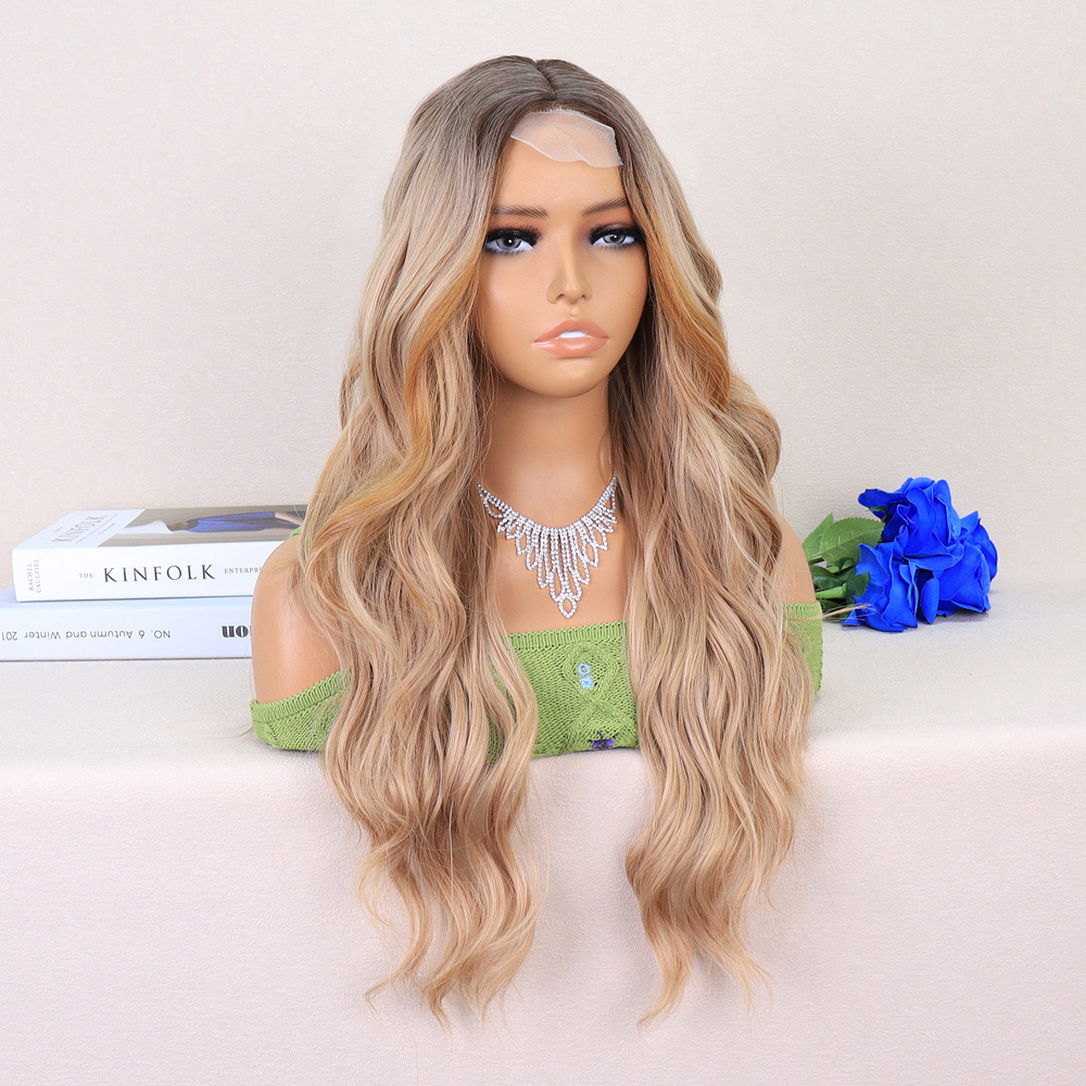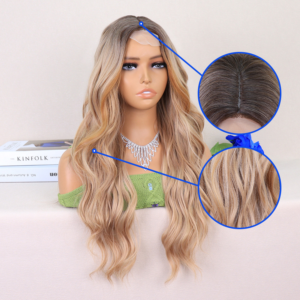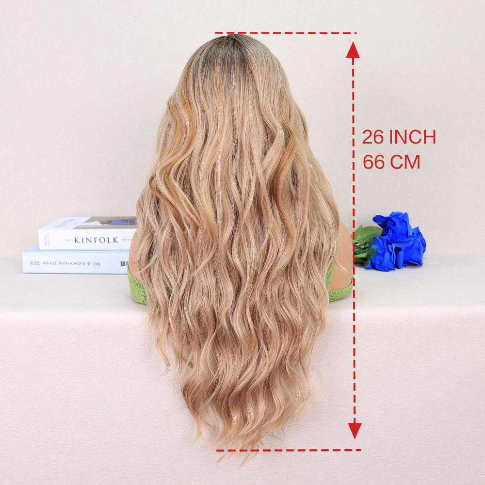 Perçemli Uzun Su Dalgası Fiber Sentetik Peruk- Ombre ve Röfleli