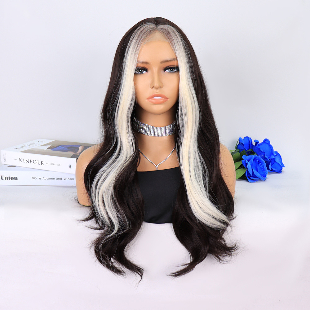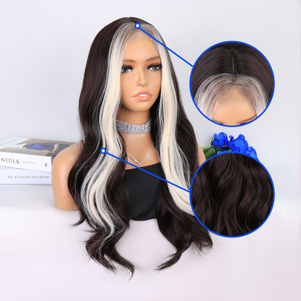 Uzun Su Dalgası Fiber Sentetik Peruk - Küllü Kumral / Beyaz Platin Ombre