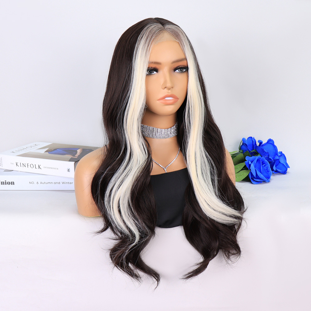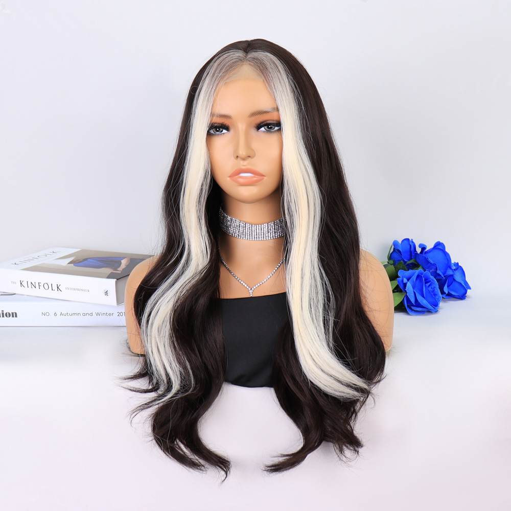 Perçemli Uzun Su Dalgası Fiber Sentetik Peruk- Ombre ve Röfleli