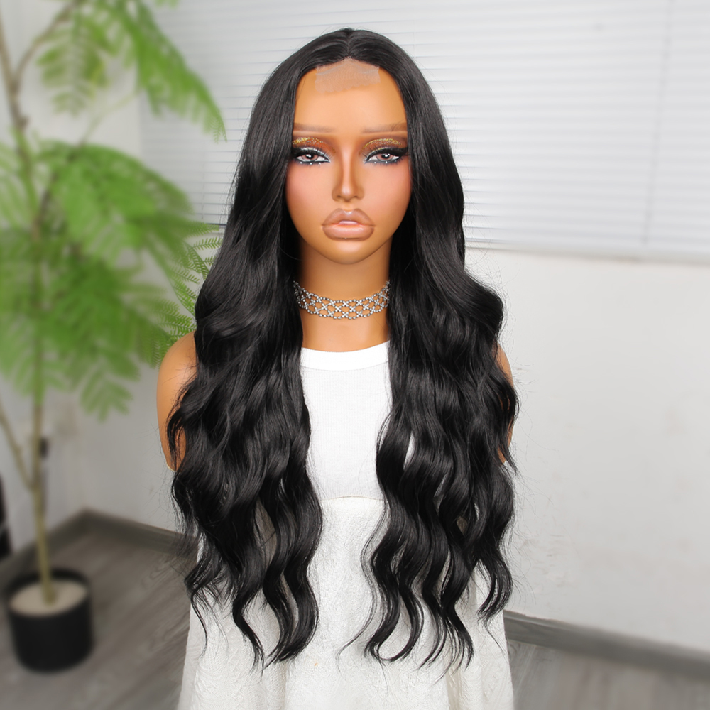 Perçemli Uzun Su Dalgası Fiber Sentetik Peruk- Ombre ve Röfleli