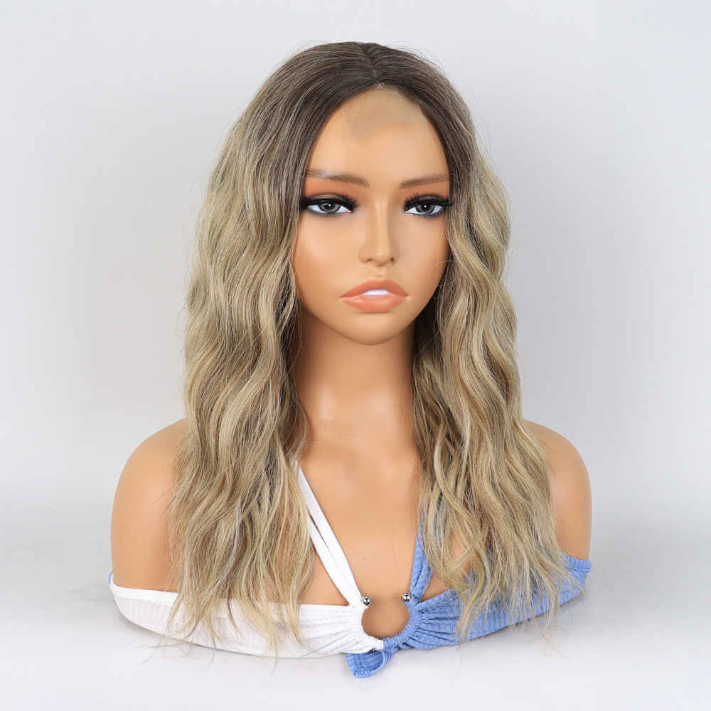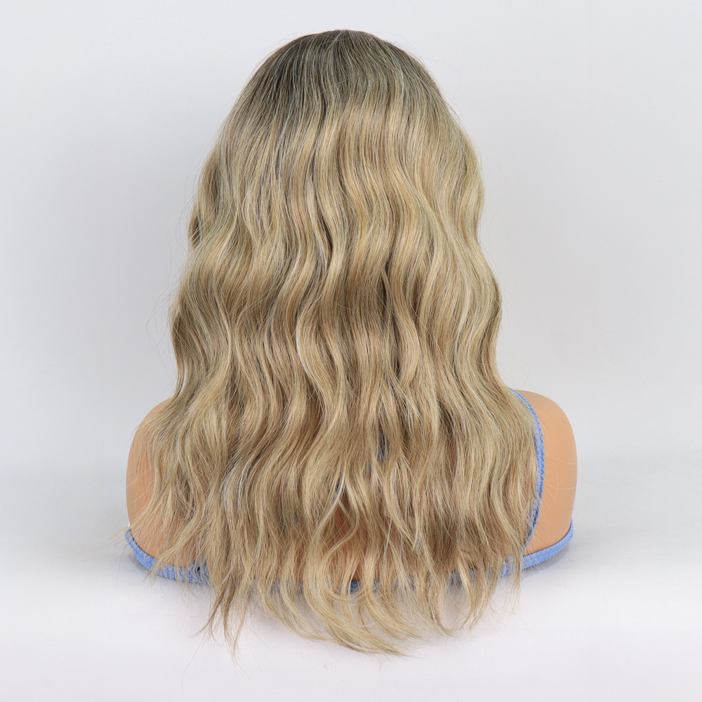 Dalgalı Perçemli Fiber Sentetik Orta Boy Peruk - Ombre ve Röfleli