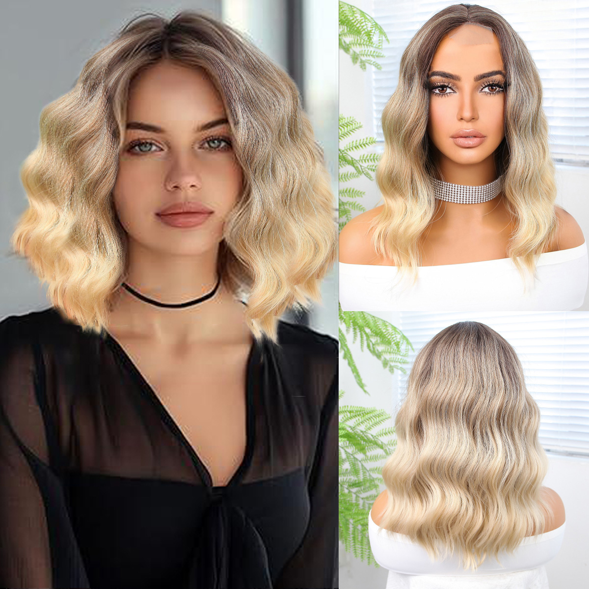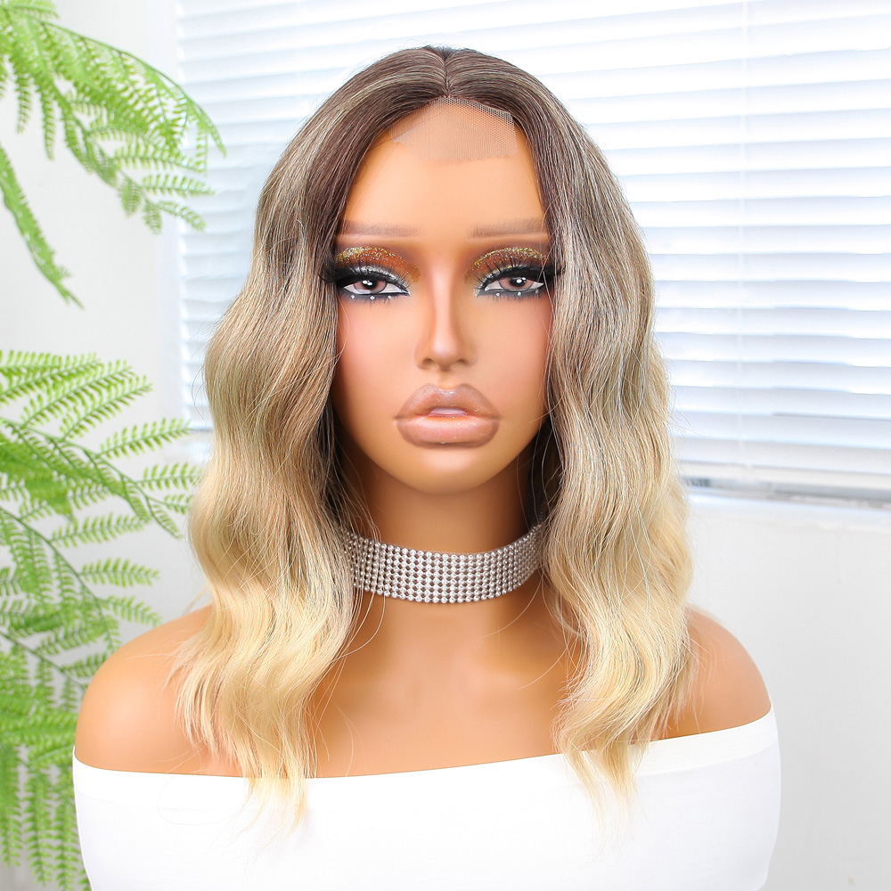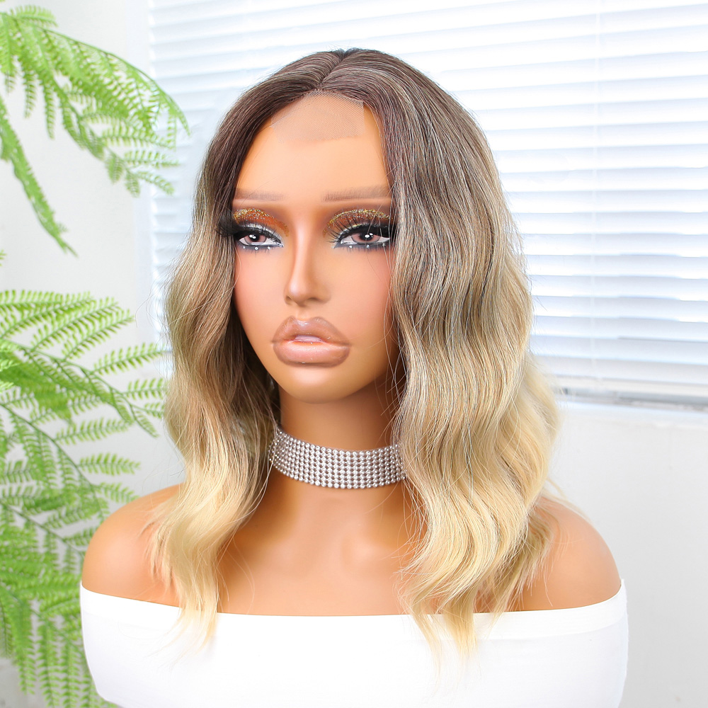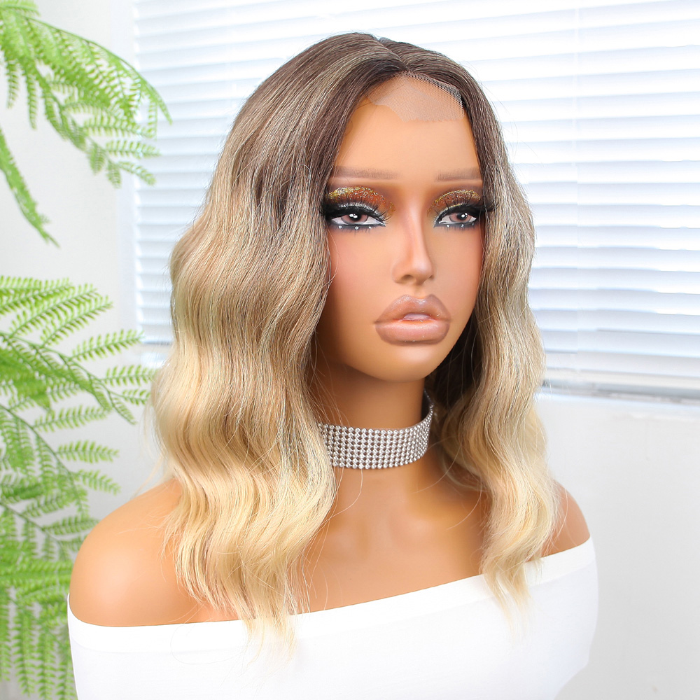 Dalgalı Kısa Perçemli Fiber Sentetik Peruk - Ombre ve Röfleli
