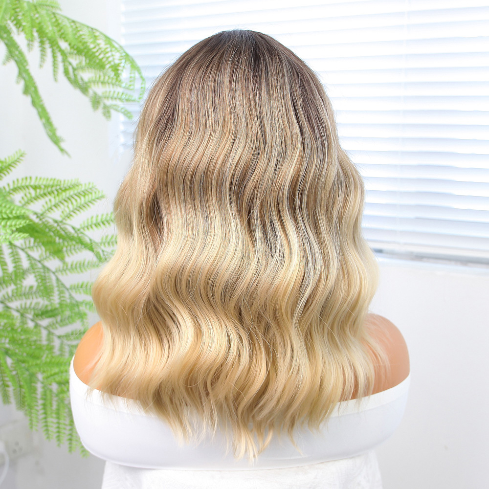 Dalgalı Perçemli Fiber Sentetik Orta Boy Peruk - Ombre ve Röfleli