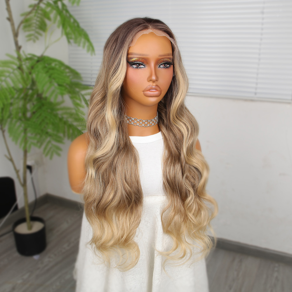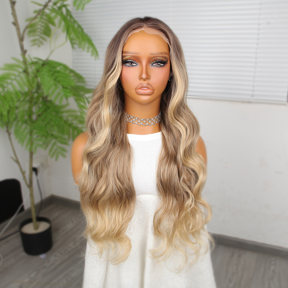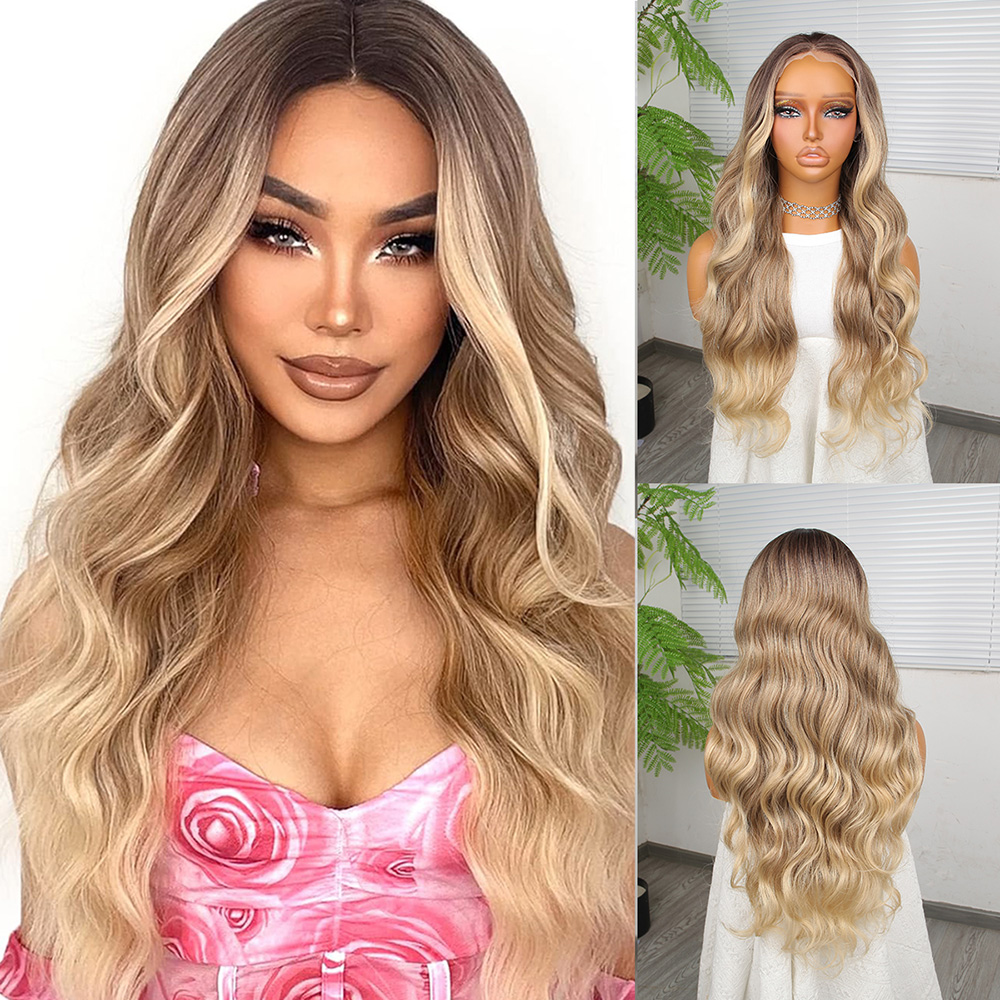 Perçemli Uzun Su Dalgası Fiber Sentetik Peruk- Ombre ve Röfleli