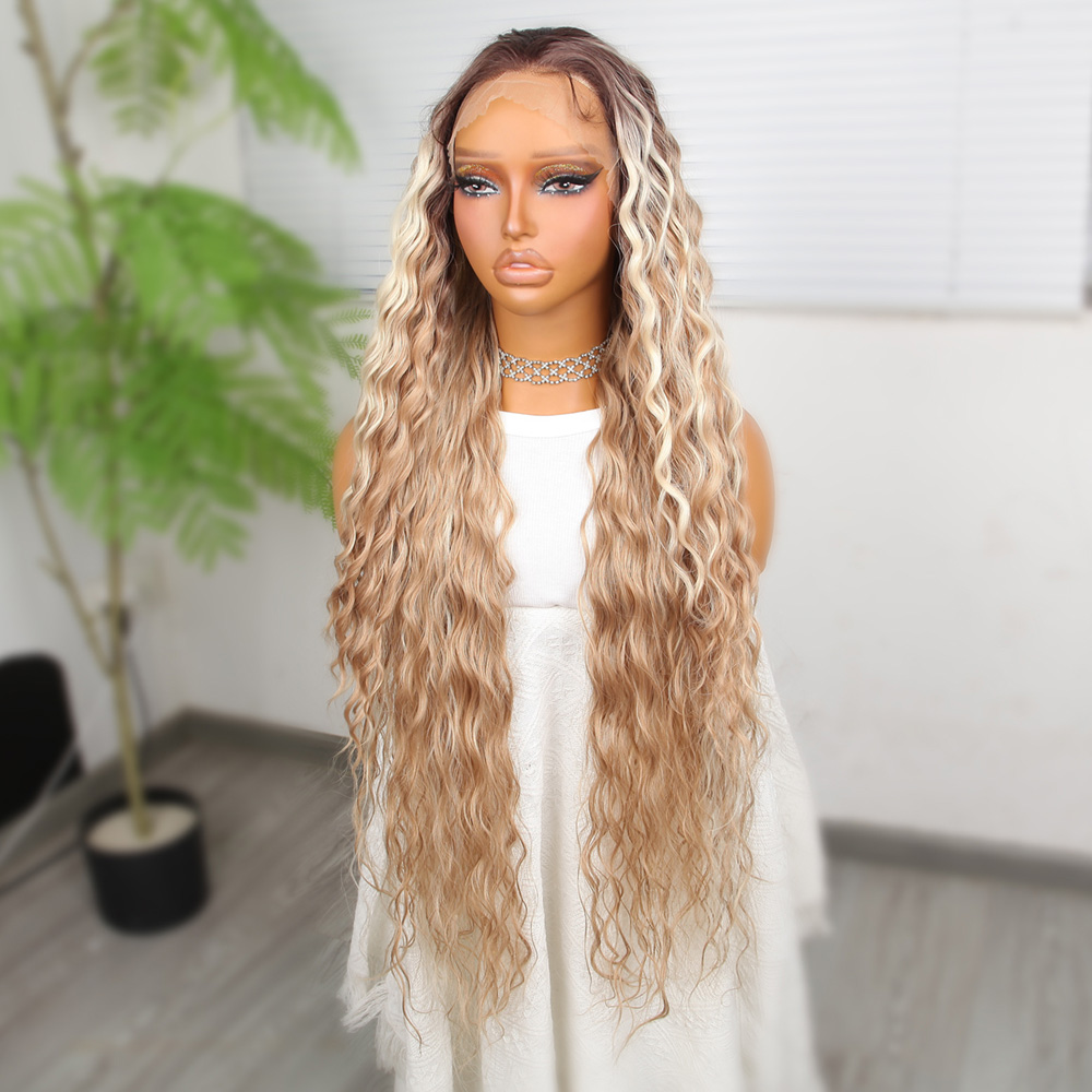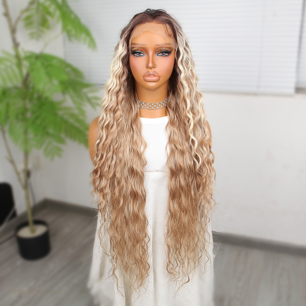 Perçemli Uzun Su Dalgası Fiber Sentetik Peruk- Ombre ve Röfleli