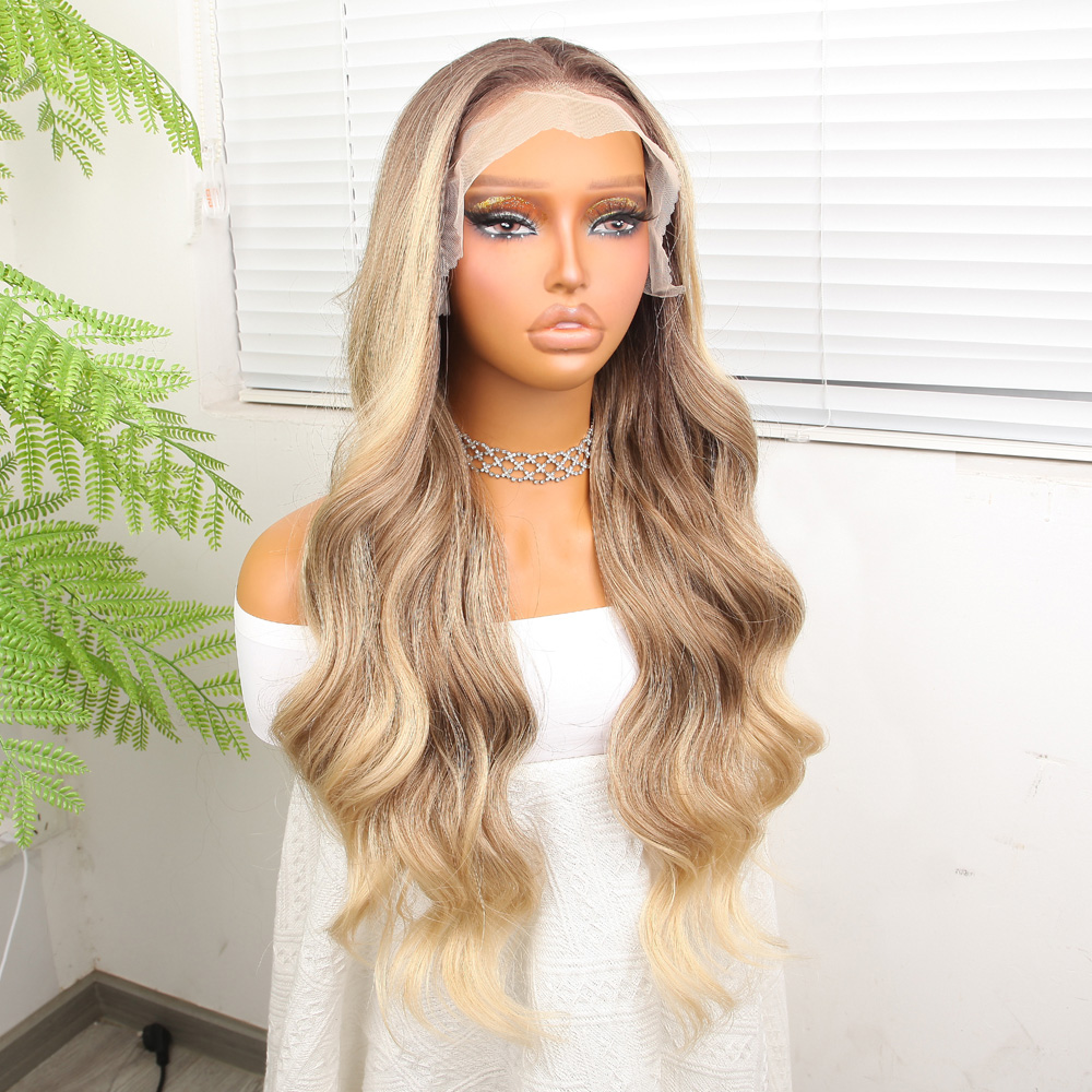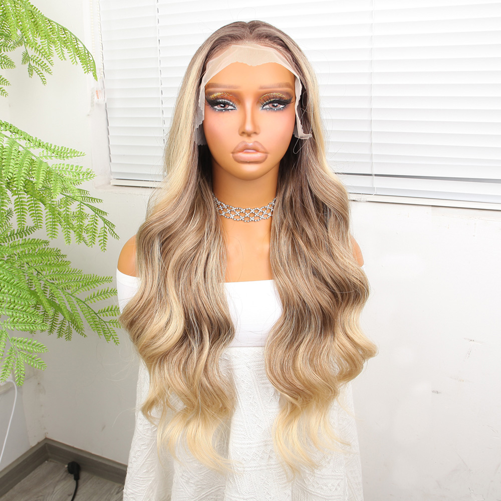 Perçemli Uzun Su Dalgası Fiber Sentetik Peruk- Ombre ve Röfleli