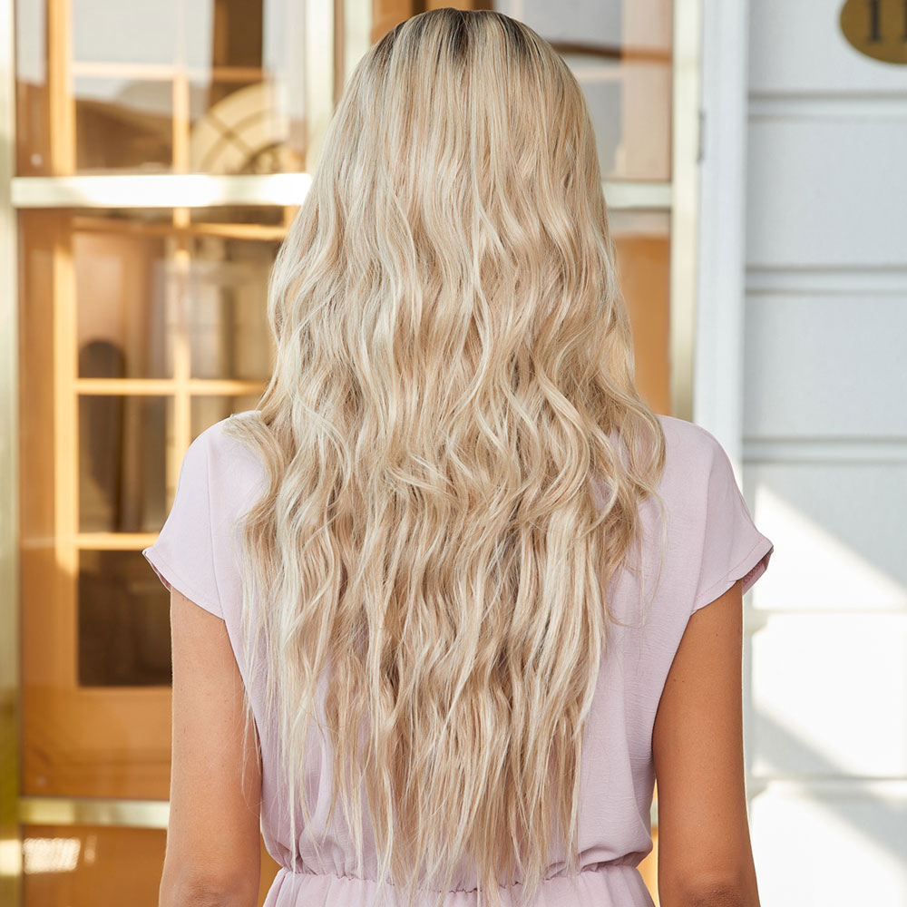 Uzun Su Dalgası Fiber Sentetik Peruk - Küllü Kumral / Beyaz Platin Ombre