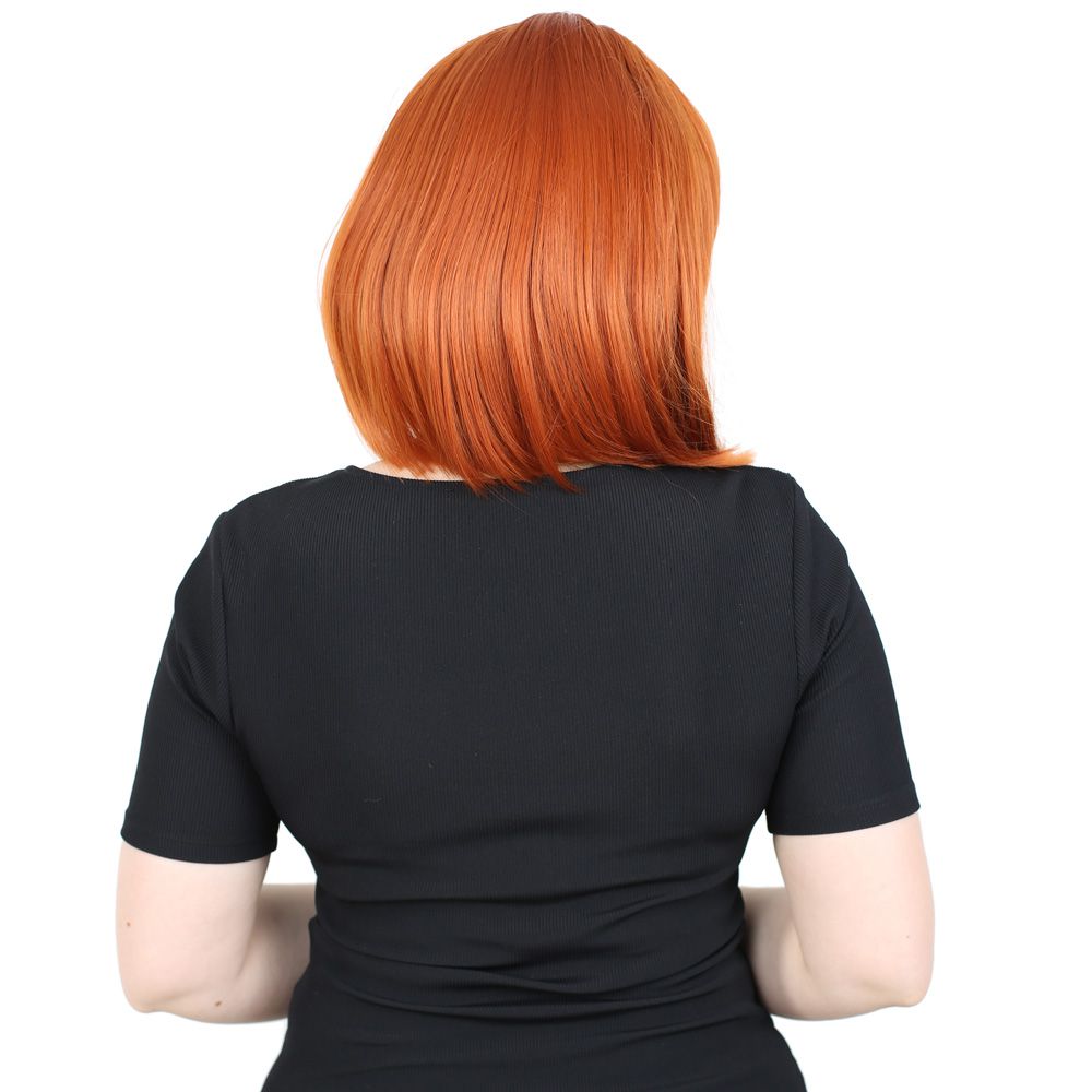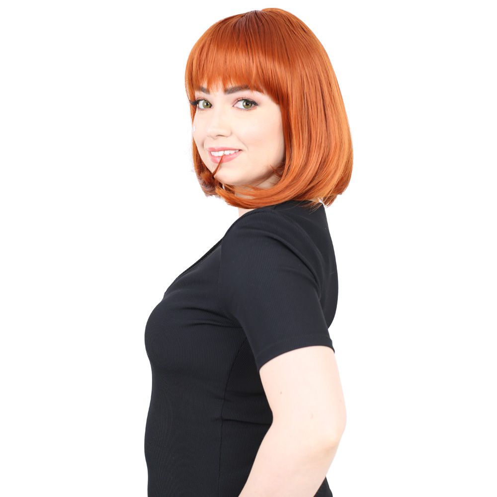 Dalgalı Perçemli Fiber Sentetik Orta Boy Peruk - Kızıl Kahve