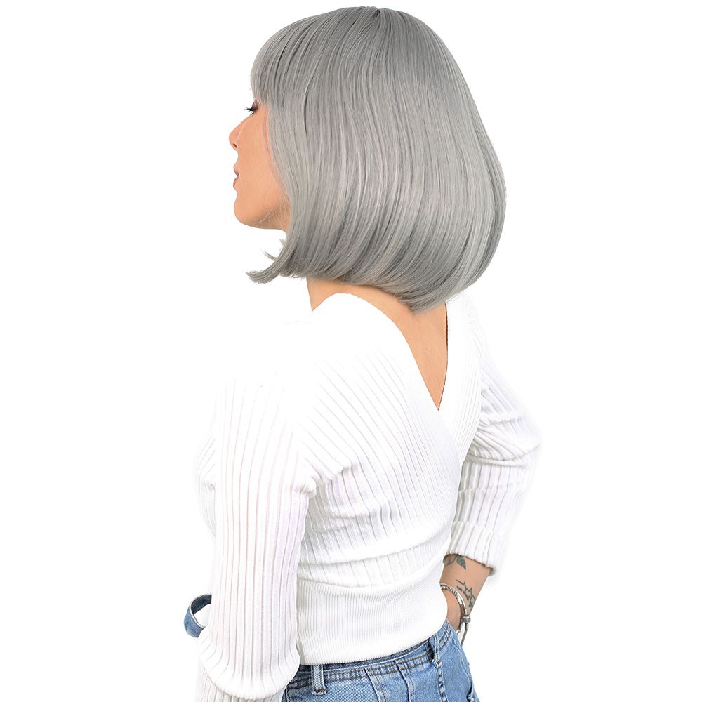 Dalgalı Perçemli Fiber Sentetik Orta Boy Peruk - Siyah Gri Ombreli