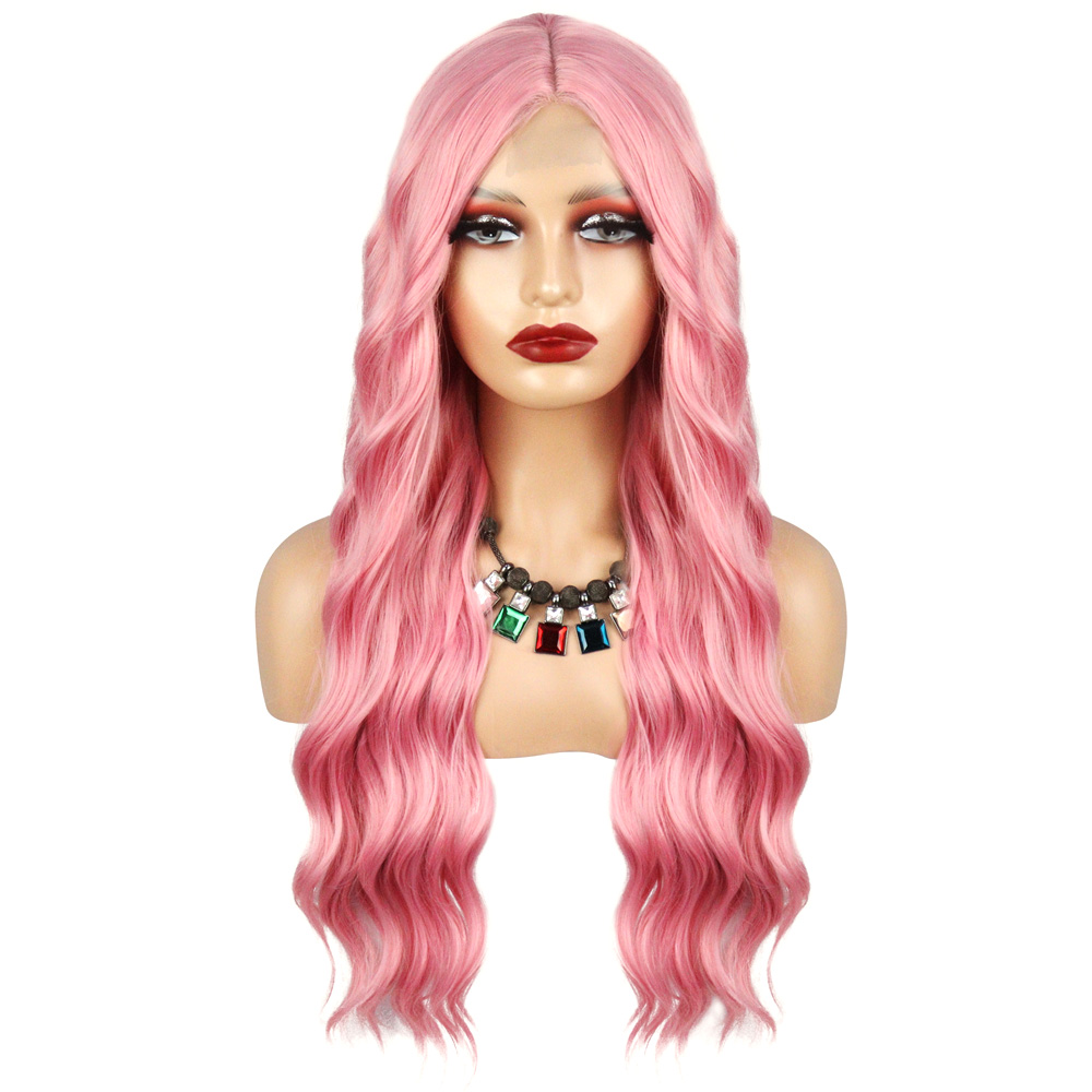Perçemli Uzun Su Dalgası Fiber Sentetik Peruk- Ombre ve Röfleli