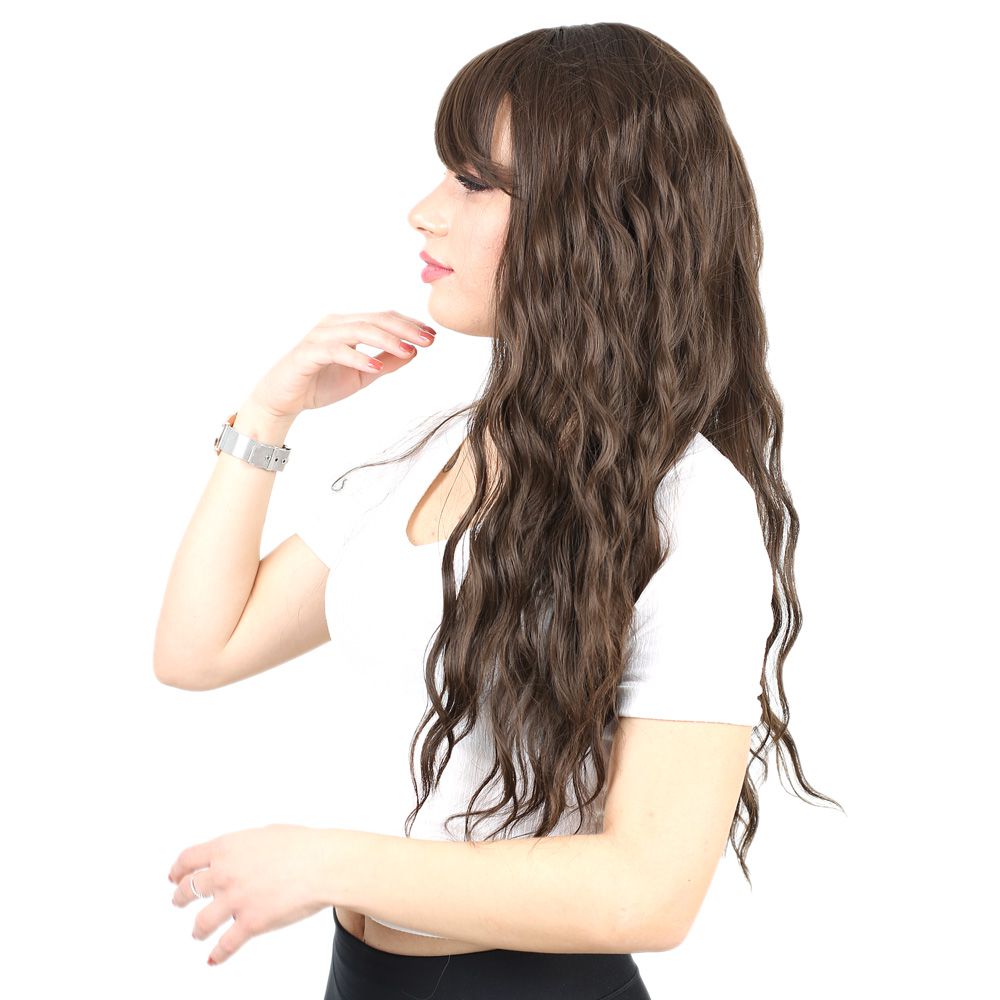 Perçemli Uzun Su Dalgası Fiber Sentetik Peruk- Açık Kahve