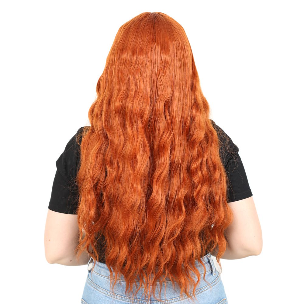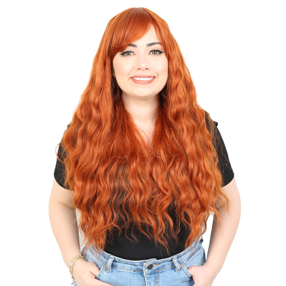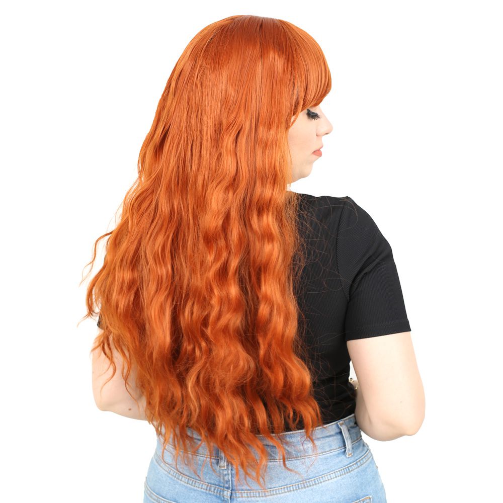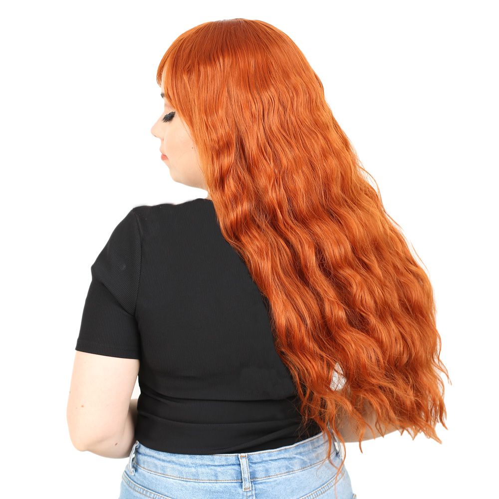 Perçemli Uzun Su Dalgası Fiber Sentetik Peruk- Bakır