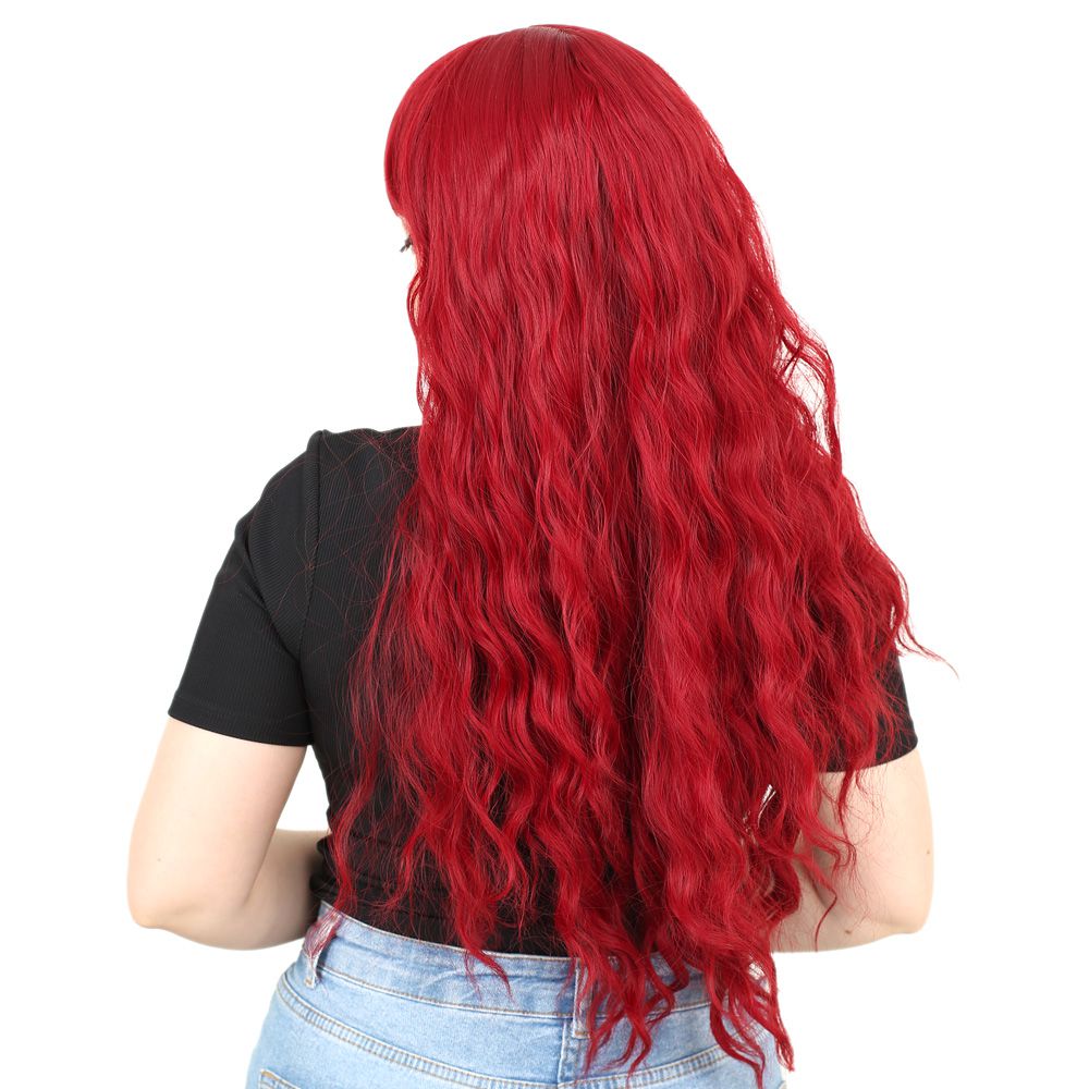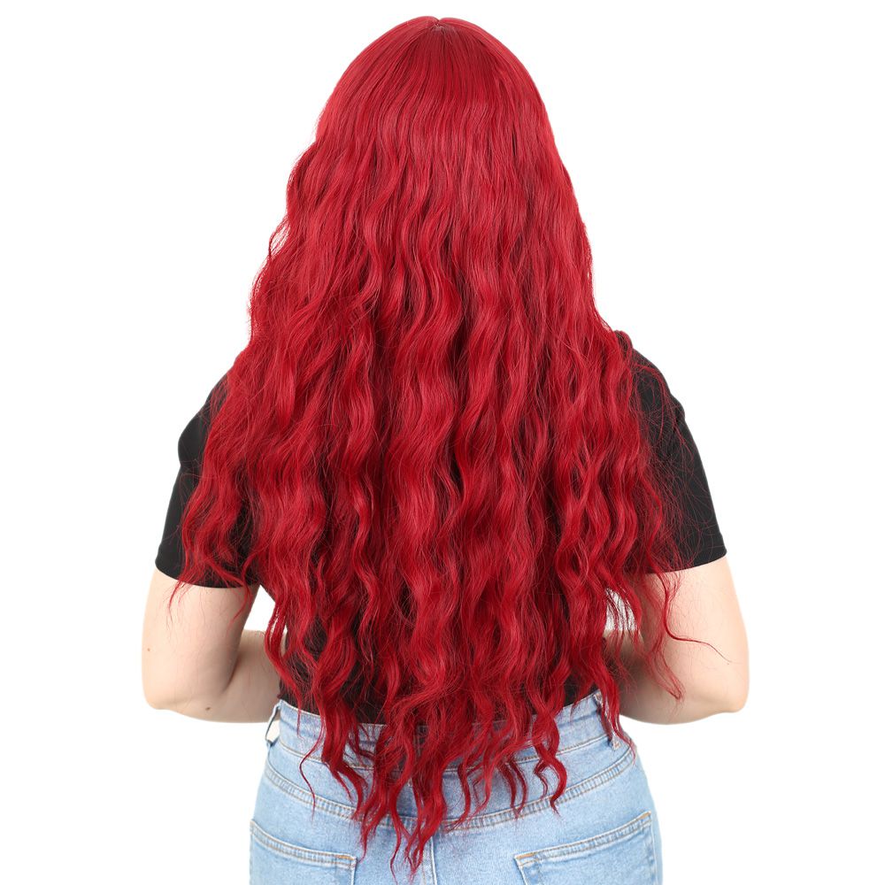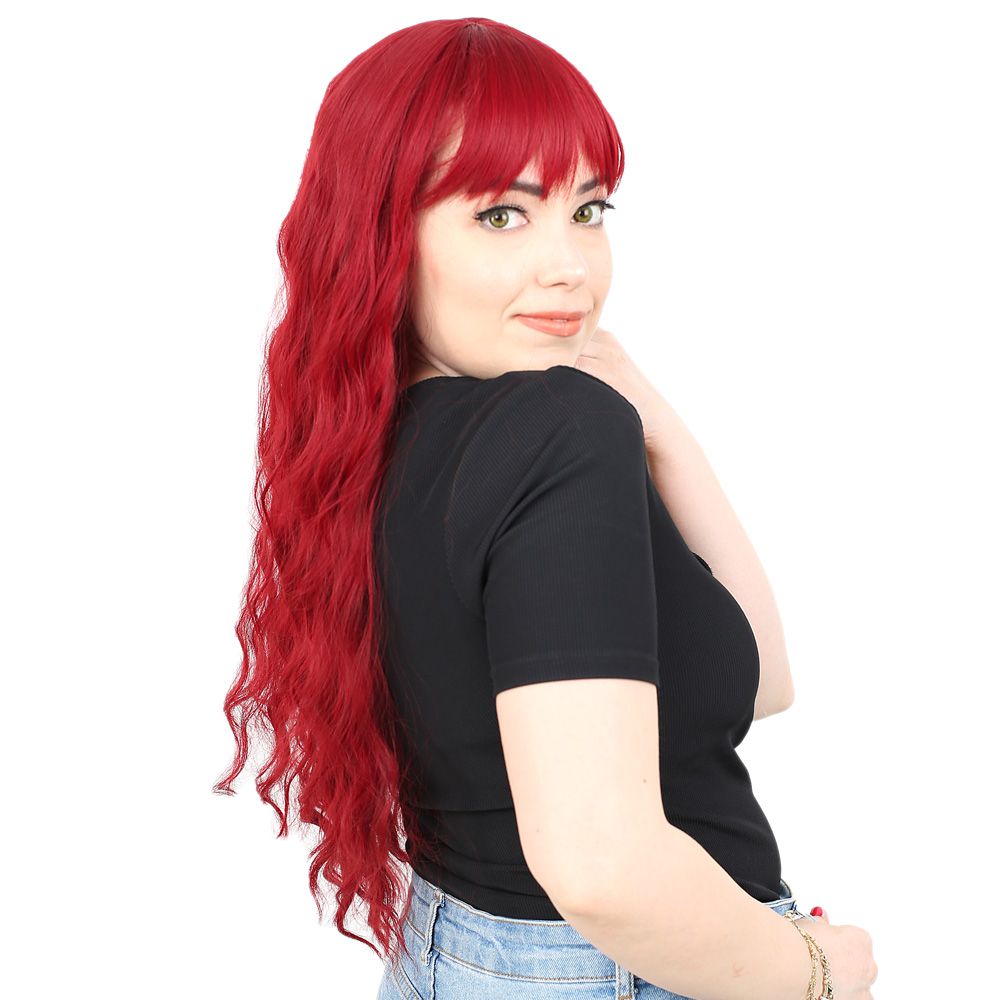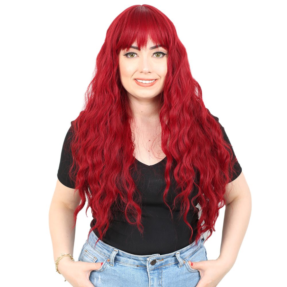 Perçemli Uzun Su Dalgası Fiber Sentetik Peruk - Kızıl