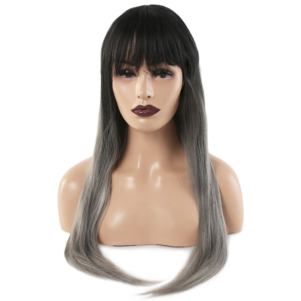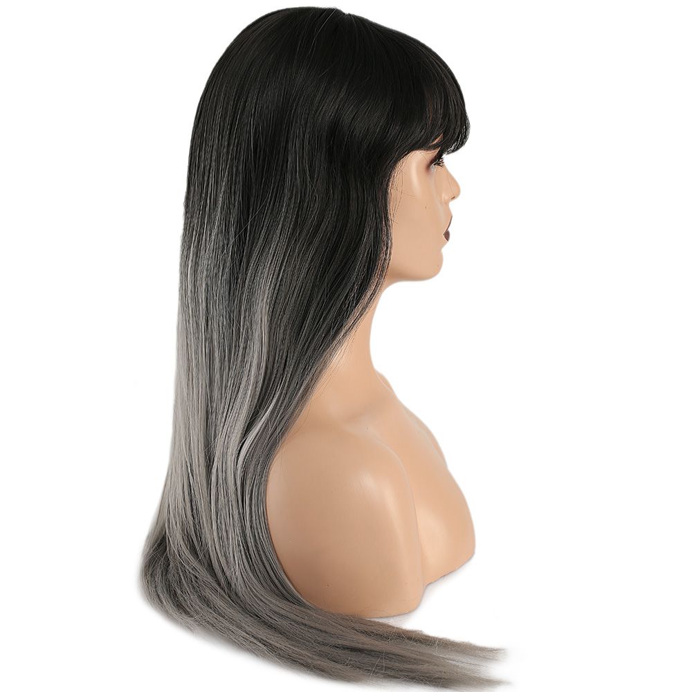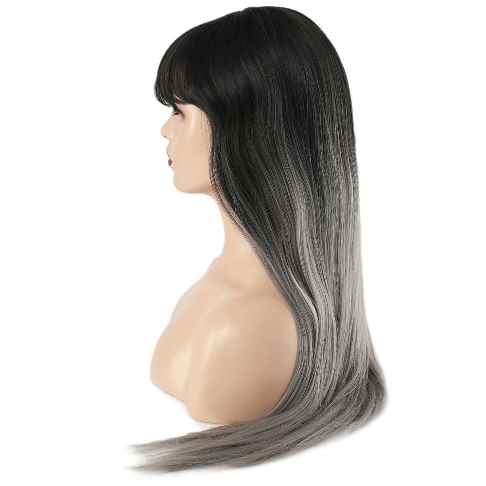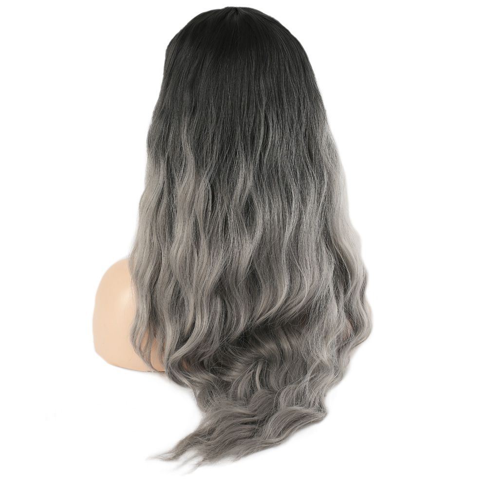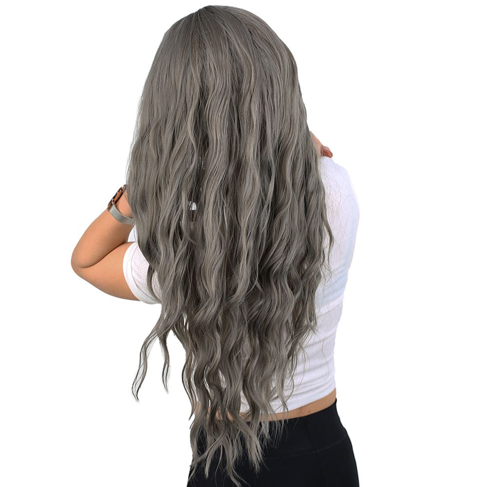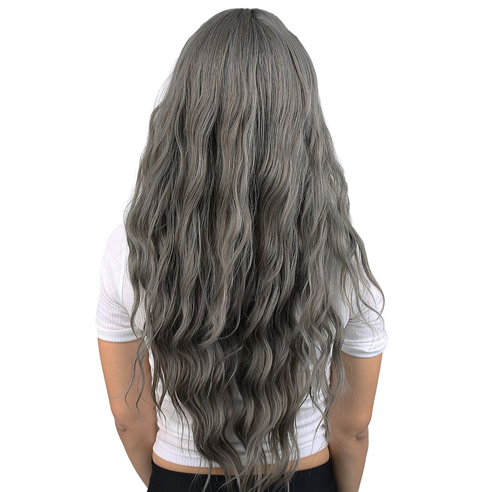 Perçemli Uzun Su Dalgası Fiber Sentetik Peruk- Koyu Gri