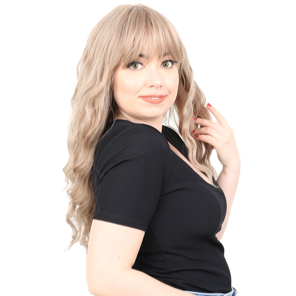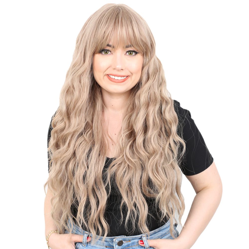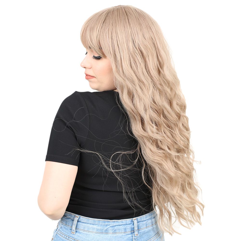 Perçemli Uzun Su Dalgası Fiber Sentetik Peruk- Küllü Bebek Sarı
