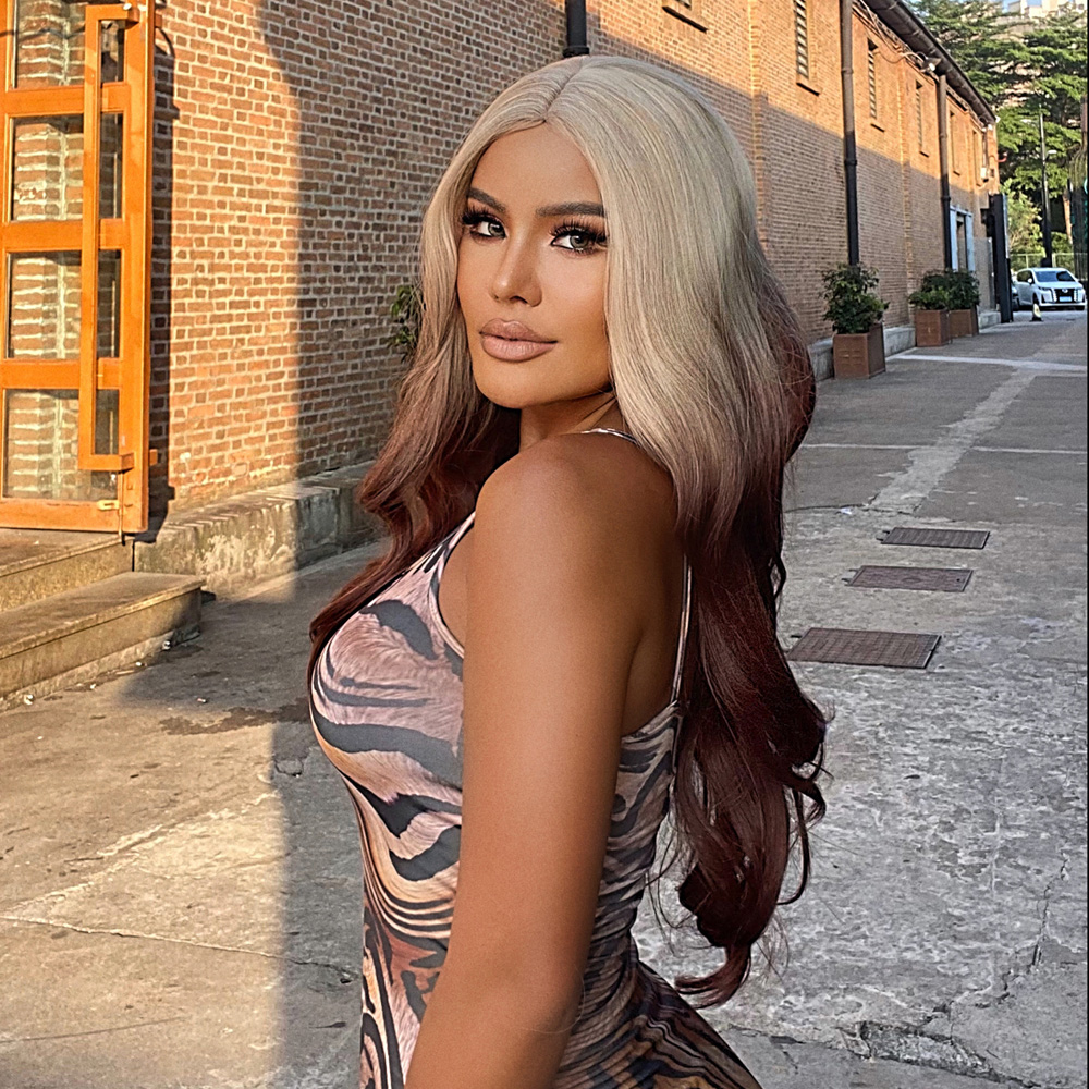 Kumral Beyaz Platin Ombreli Ekstra Uzun Fiber Sentetik Dalgalı Tül Peruk