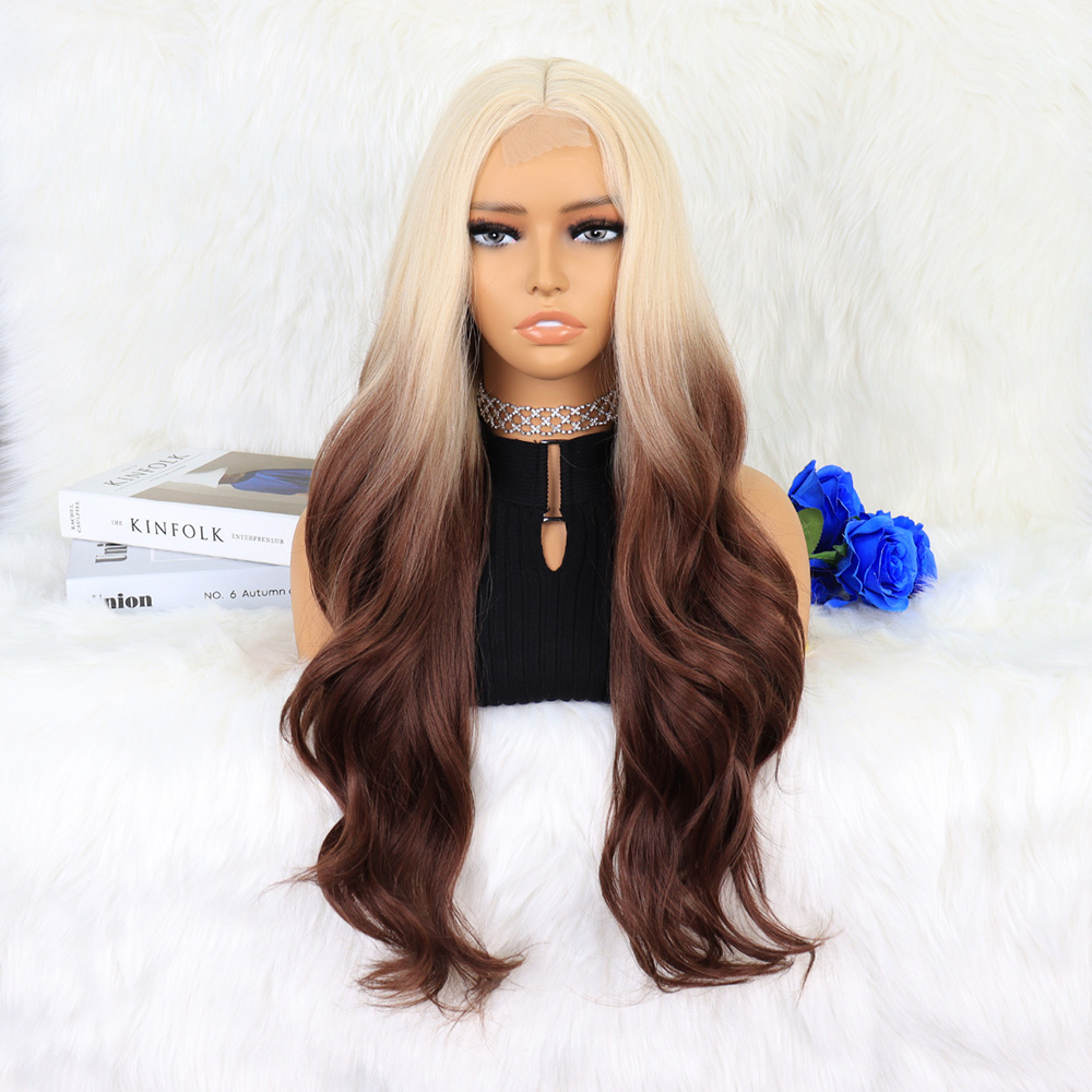Perçemli Uzun Su Dalgası Fiber Sentetik Peruk- Ombre ve Röfleli