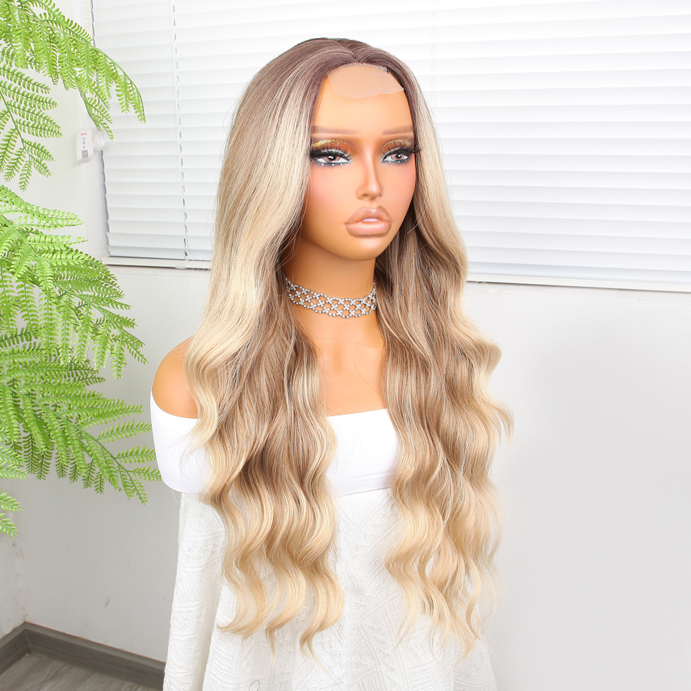 Perçemli Uzun Su Dalgası Fiber Sentetik Peruk- Ombre ve Röfleli
