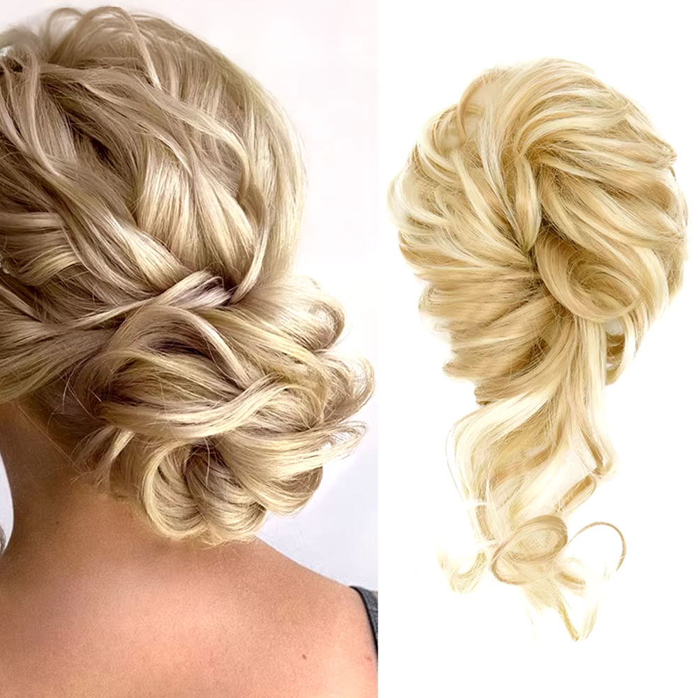 Saçlı Lastikli Kuyruklu Topuz Toka - Bal Köpüğü / Açık Platin Röfle