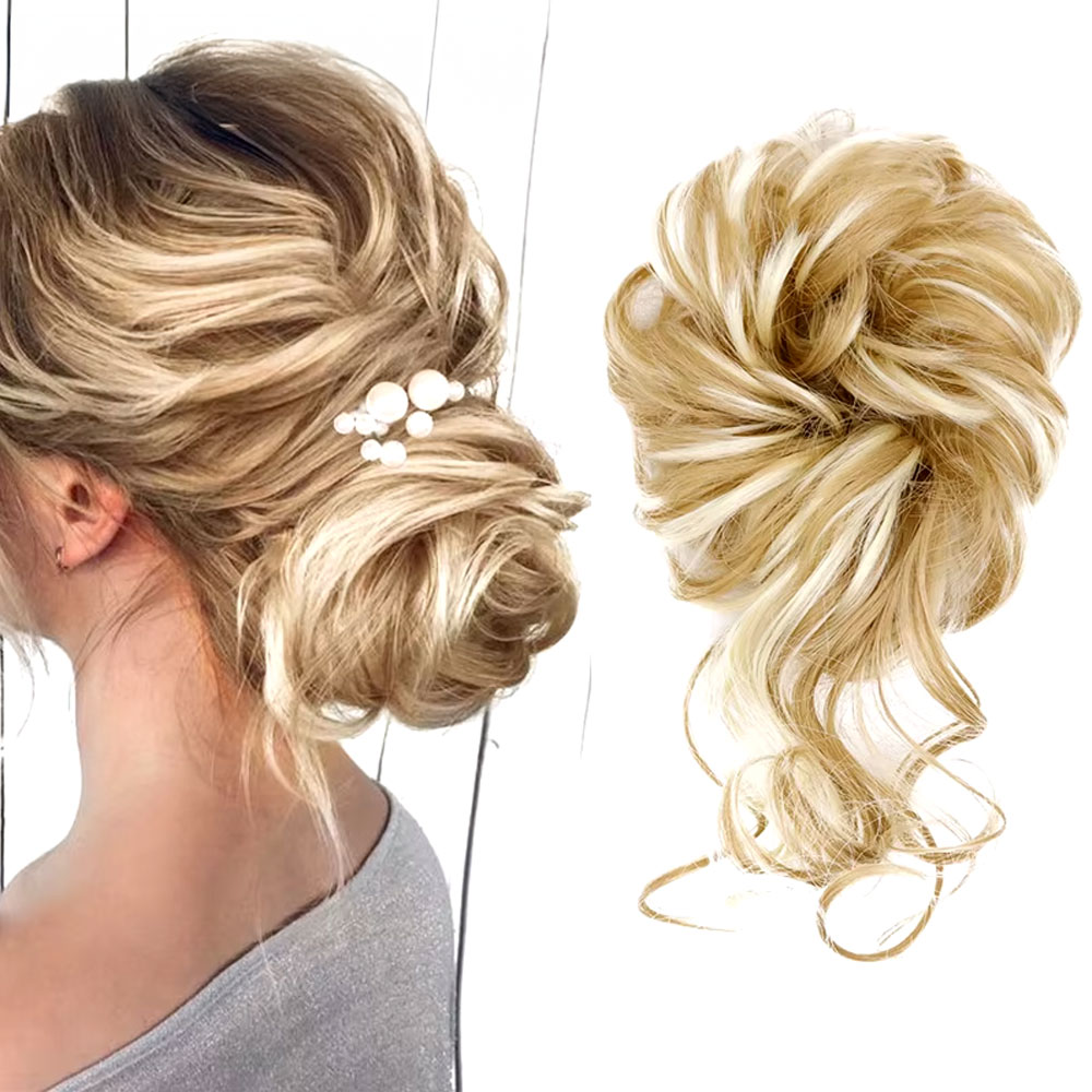 Saçlı Lastikli Kuyruklu Topuz Toka - Bal Köpüğü / Platin Röfle