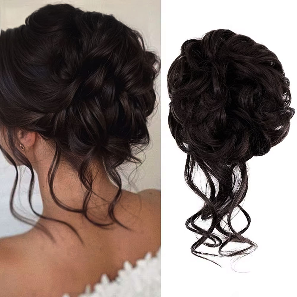 Saçlı Lastikli Kuyruklu Topuz Toka - Koyu Kestane