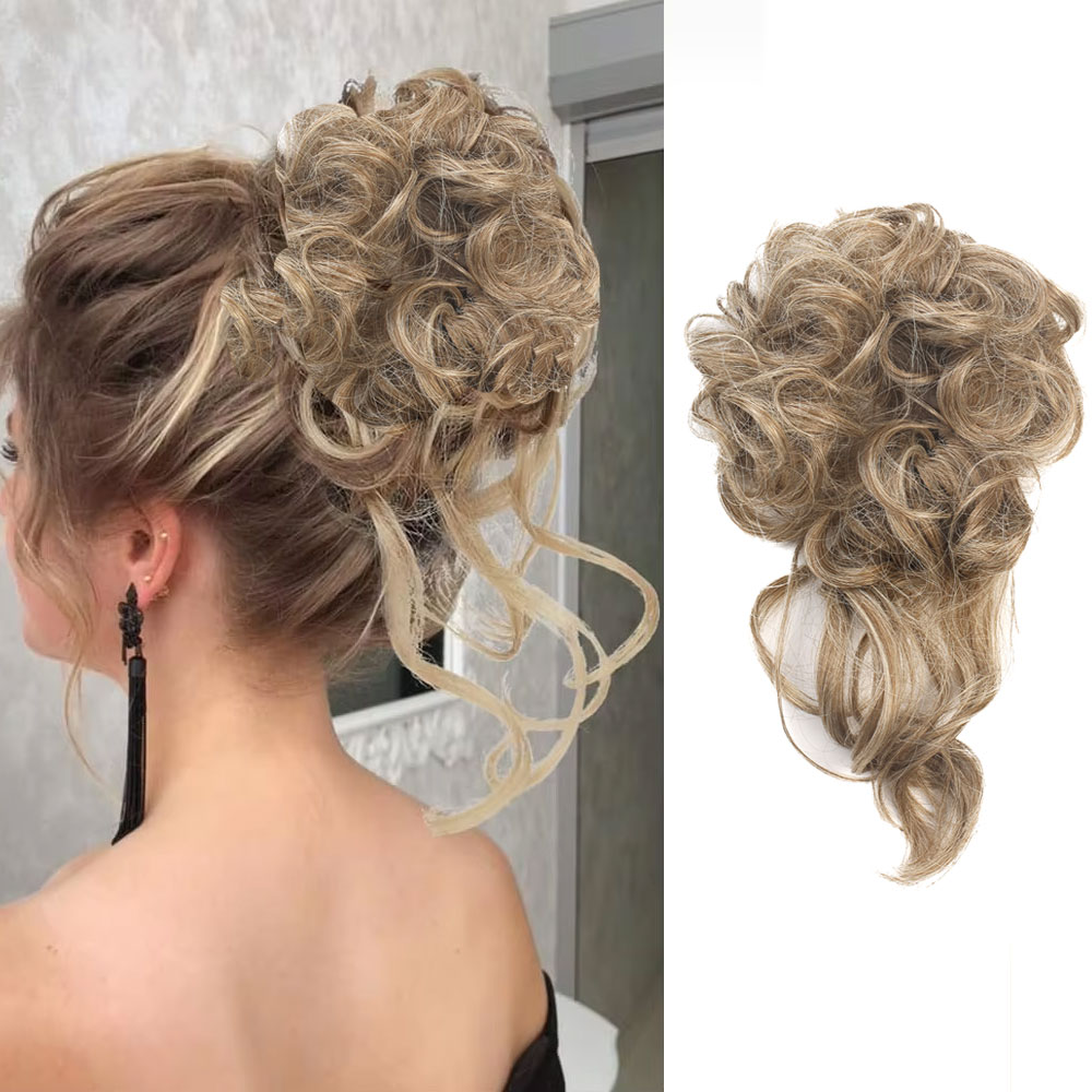 Saçlı Lastikli Kuyruklu Topuz Toka - Kumral / Platin Röfle