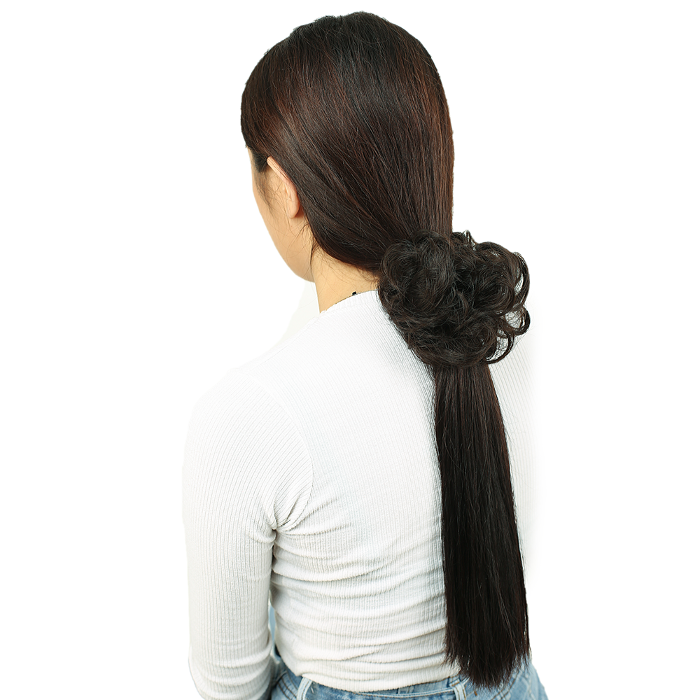 Saçlı Lastikli Kuyruklu Topuz Toka - Koyu Kestane