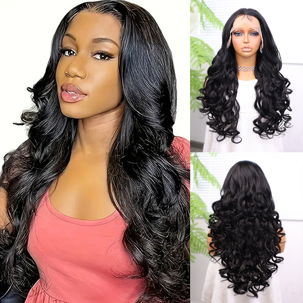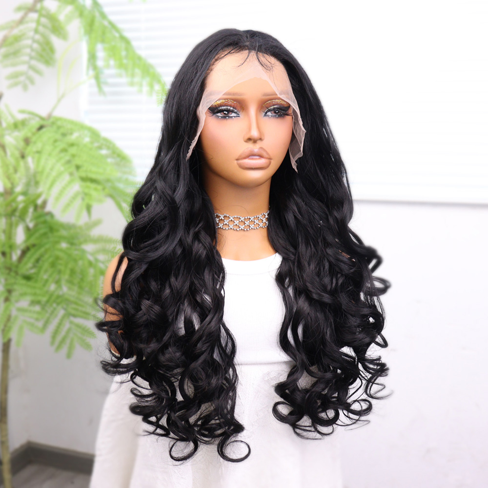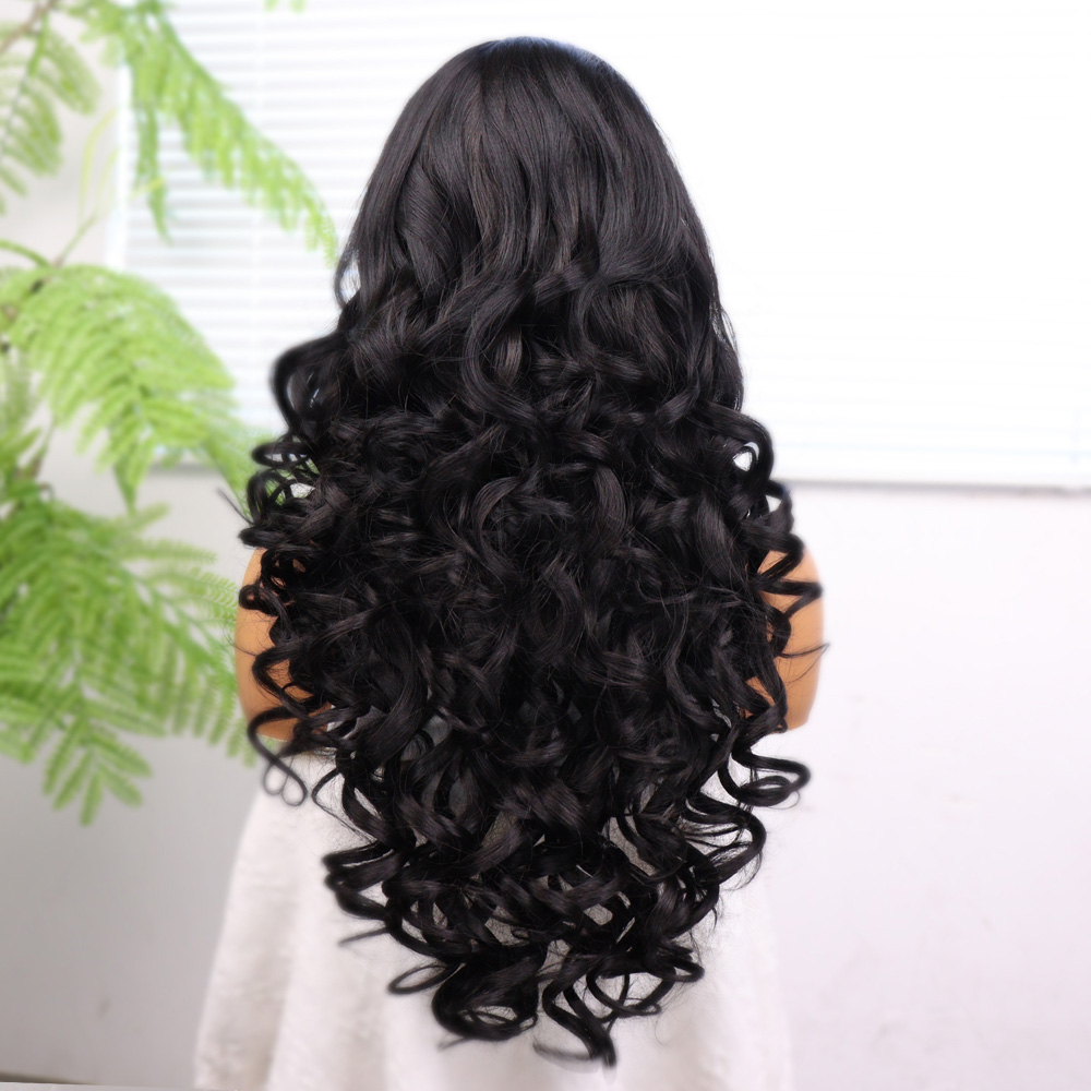 Koyu Siyah Su Dalgalı Fiber Sentetik Tül Peruk