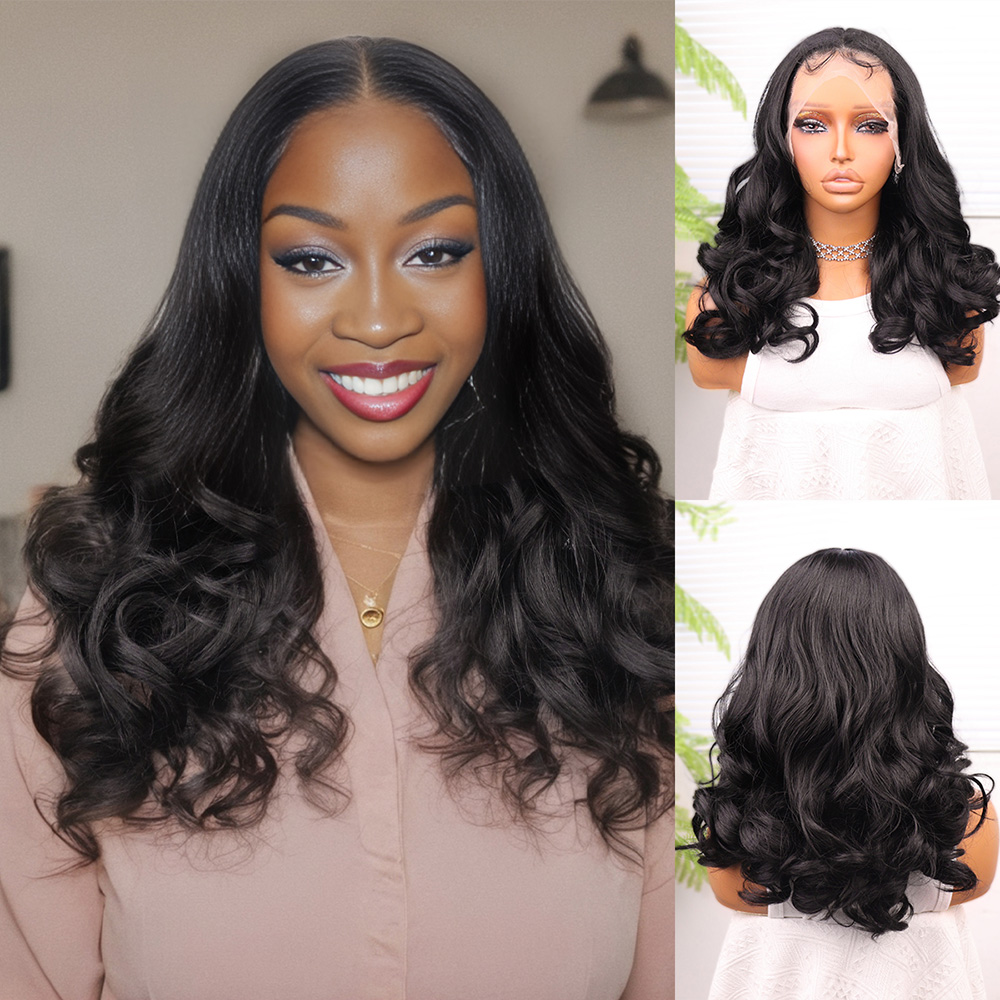 Koyu Siyah Su Dalgalı Fiber Sentetik Tül Peruk
