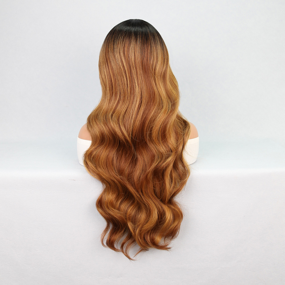 Perçemli Uzun Su Dalgası Fiber Sentetik Peruk- Ombre ve Röfleli
