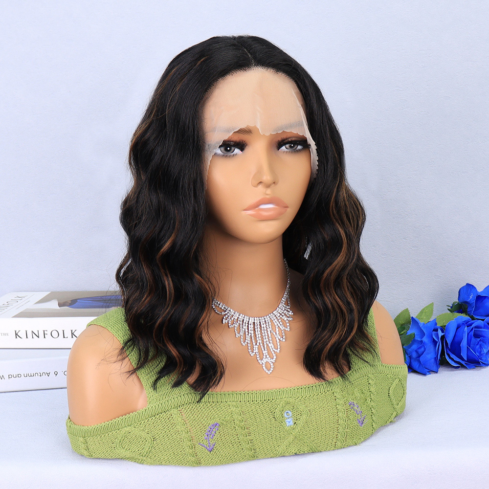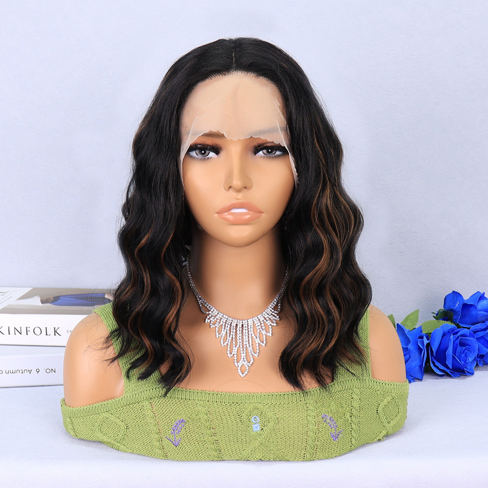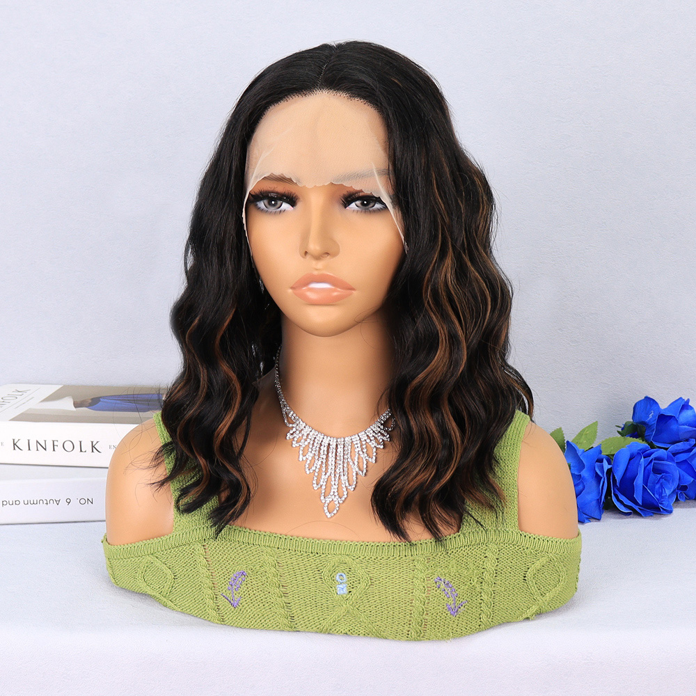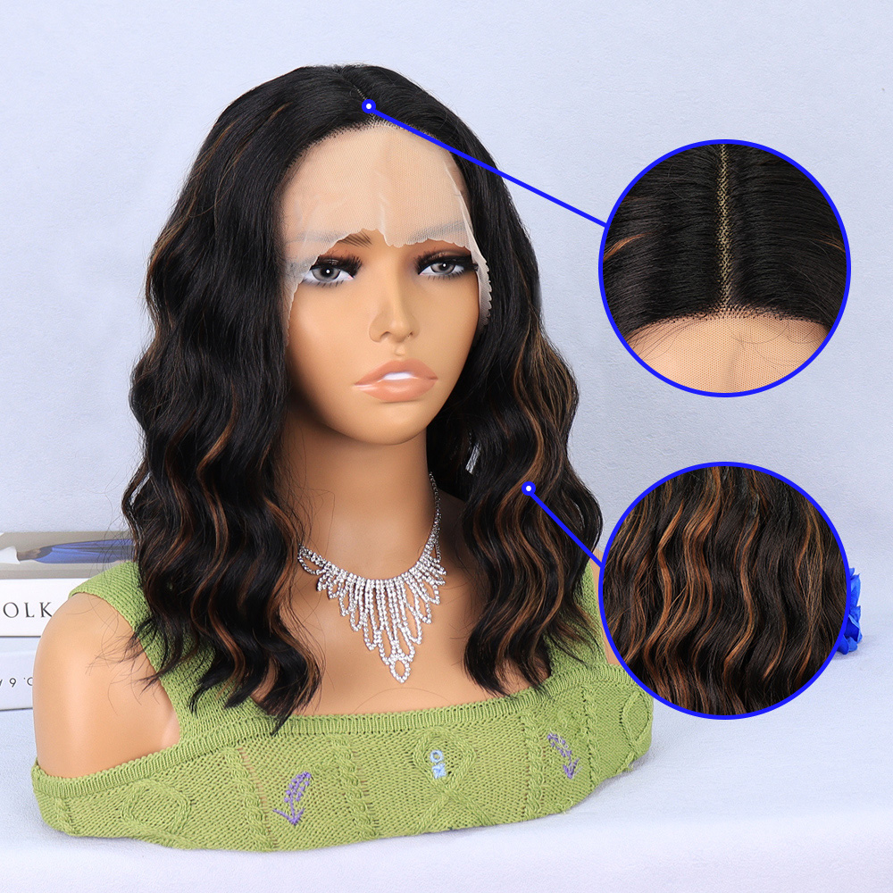 Afro Dalga Kumral Balköpüğü Ombre ve Röfleli Fiber Sentetik Tül Peruk