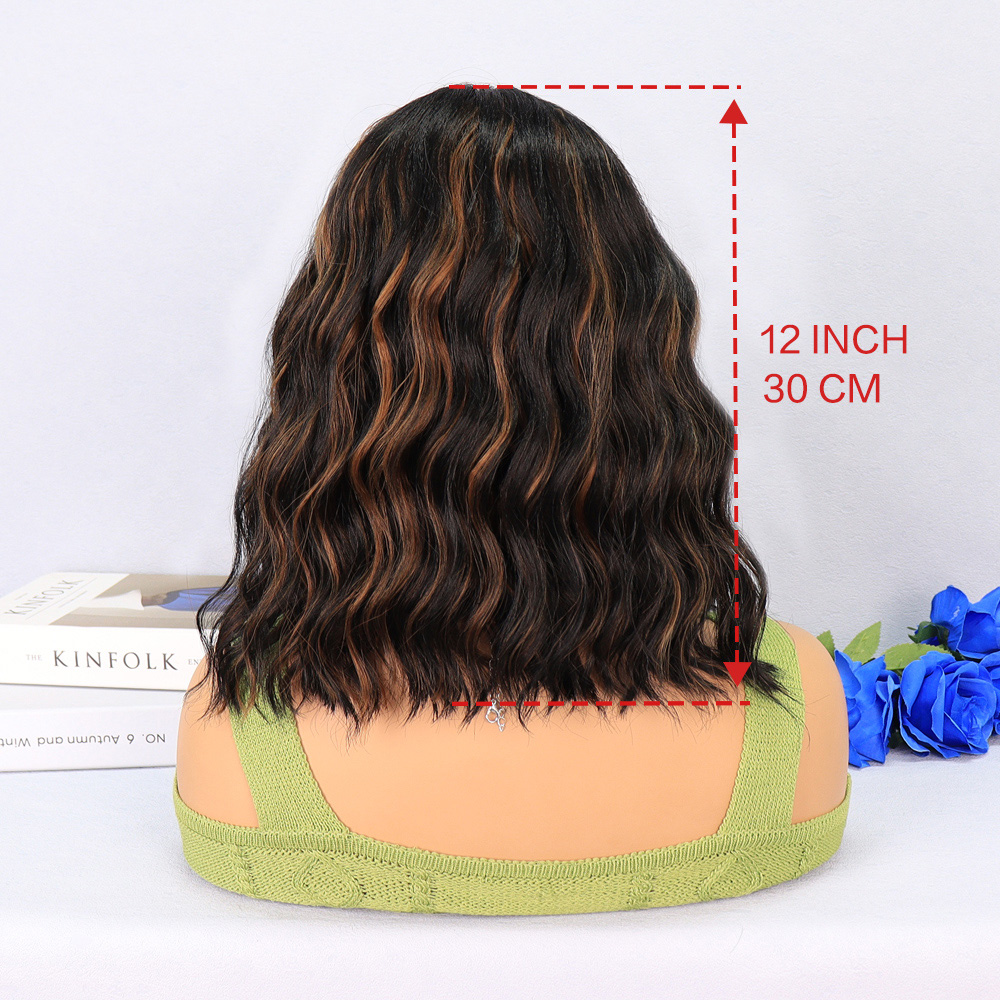 Dalgalı Kısa Perçemli Fiber Sentetik Peruk - Ombre ve Röfleli