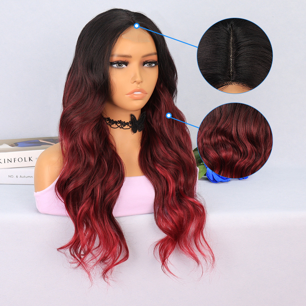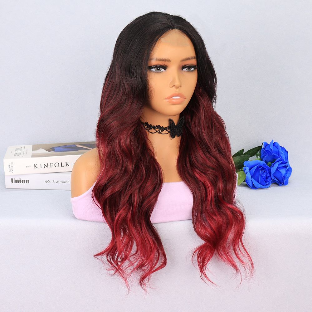 Perçemli Uzun Su Dalgası Fiber Sentetik Peruk- Ombre ve Röfleli