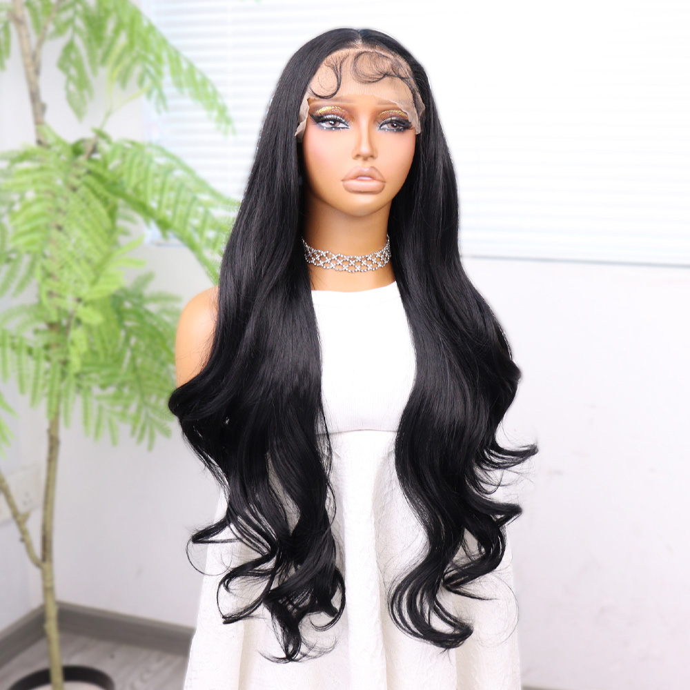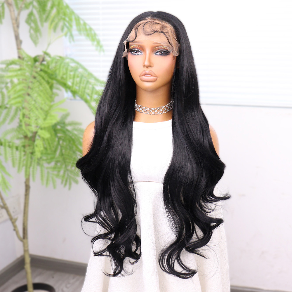 Koyu Siyah Su Dalgalı Fiber Sentetik Tül Peruk