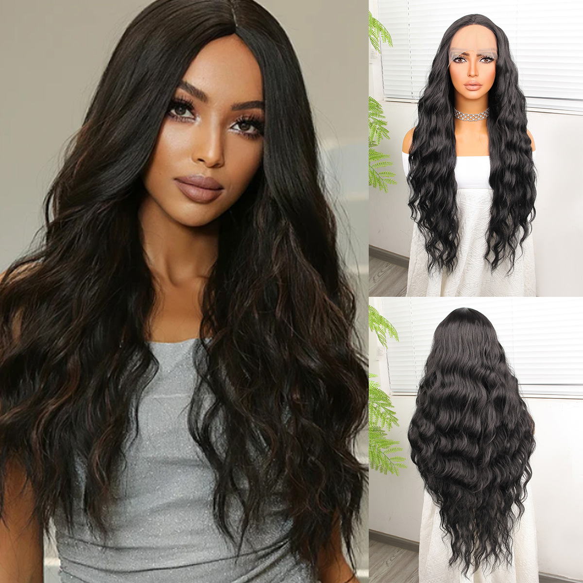 Perçemli Uzun Su Dalgası Fiber Sentetik Peruk- Ombre ve Röfleli