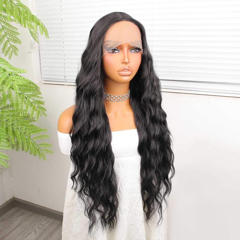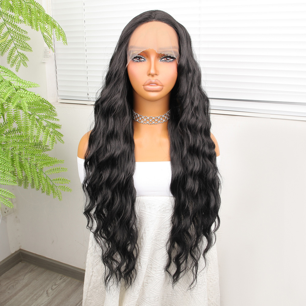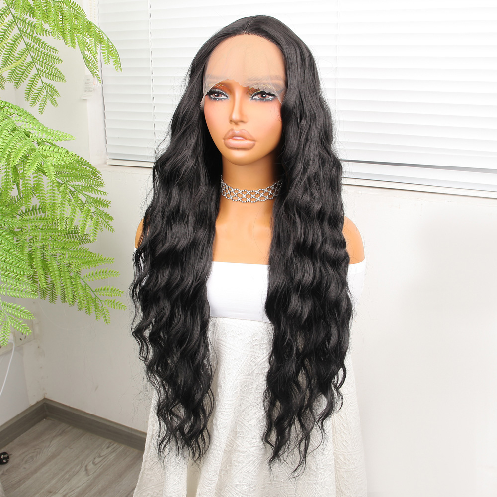 Koyu Siyah Su Dalgalı Fiber Sentetik Tül Peruk