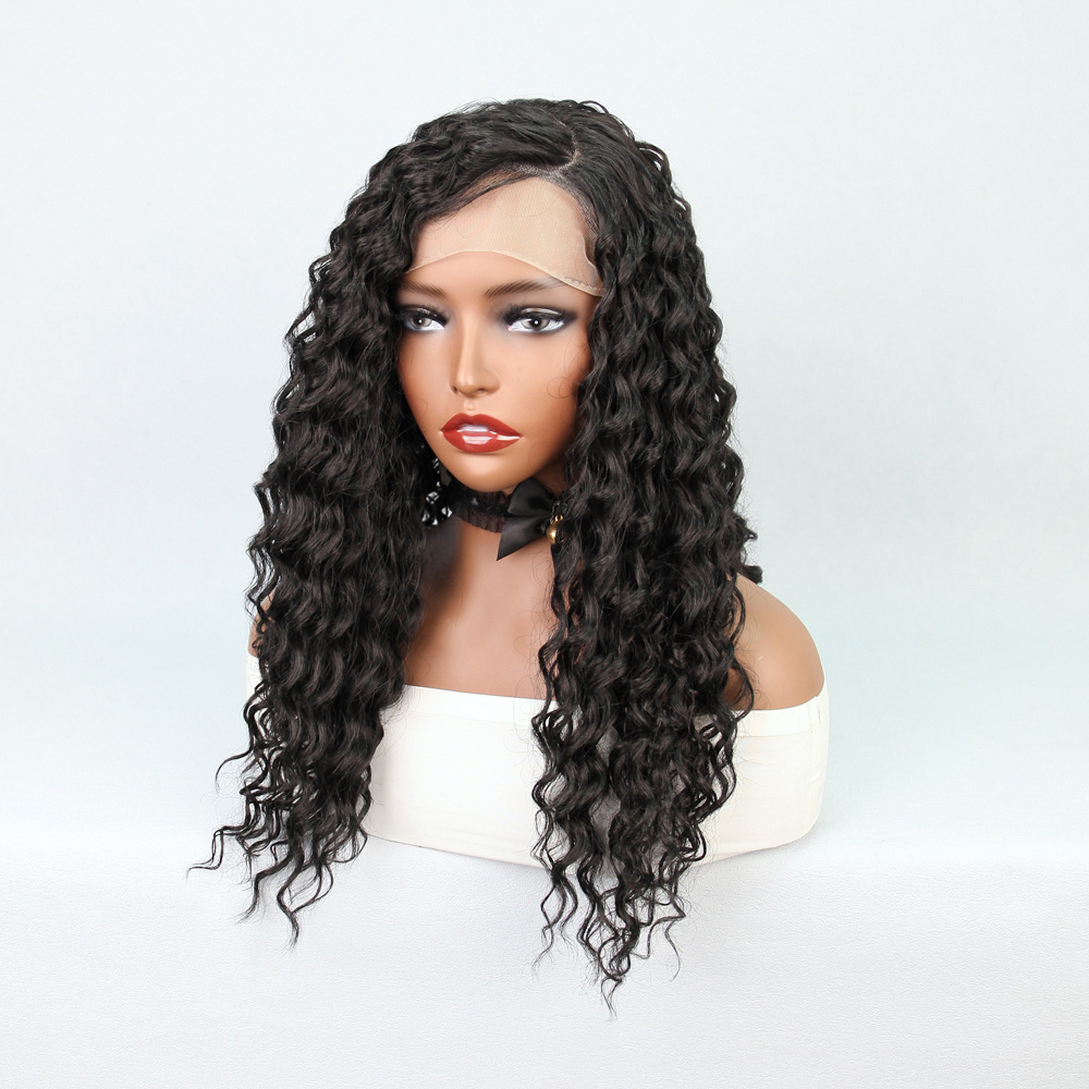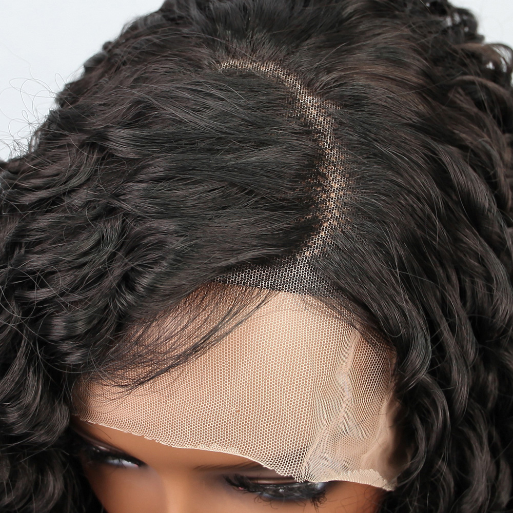Koyu Siyah Su Dalgalı Fiber Sentetik Tül Peruk