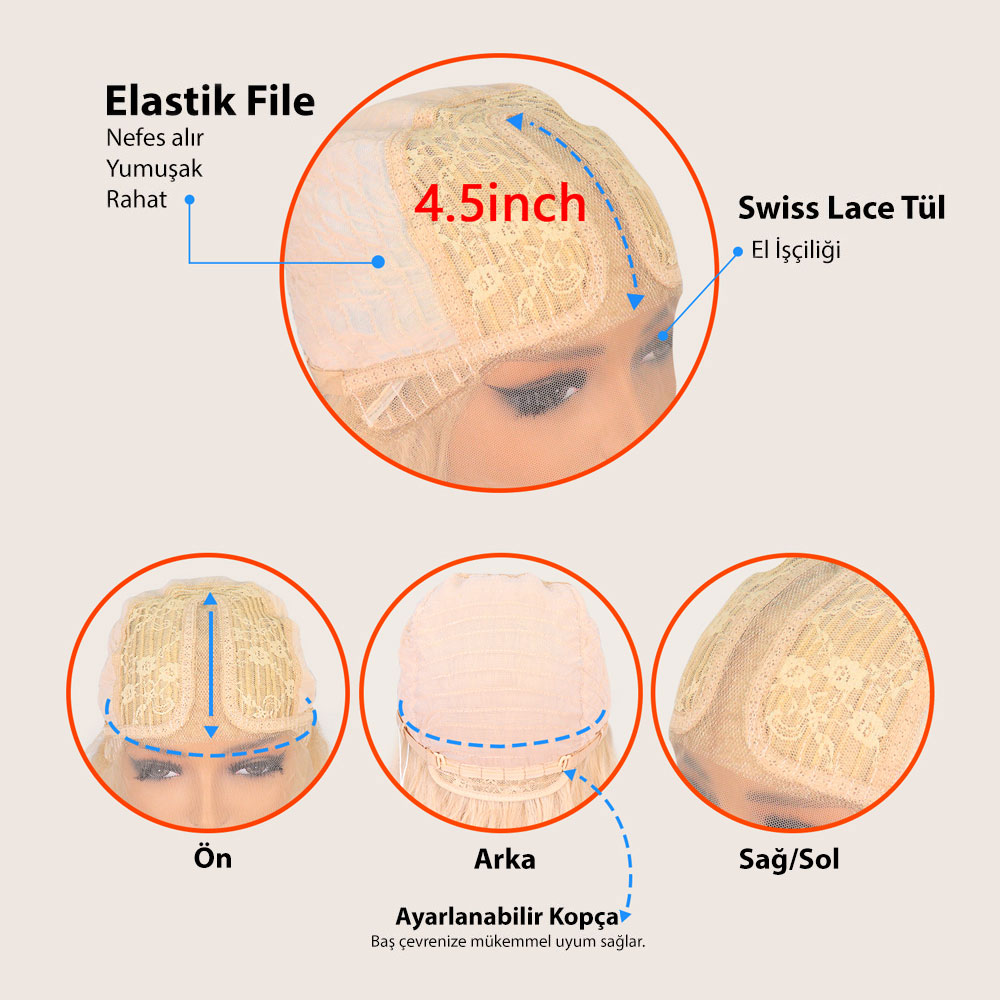 Su Dalgalı Soğuk Platin Fiber Sentetik Tül Peruk