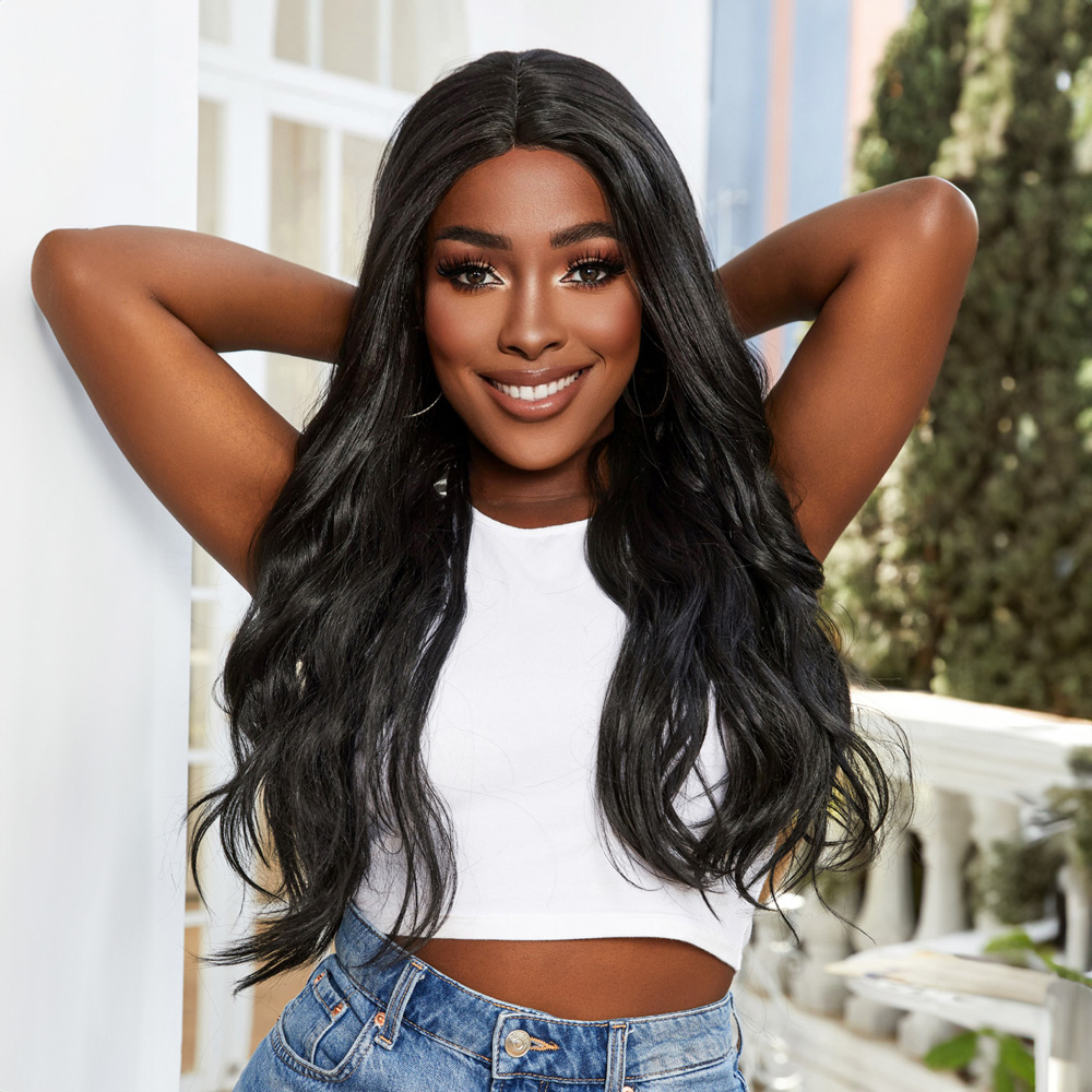 Su Dalgası Fiber Sentetik Tül Peruk - Siyah