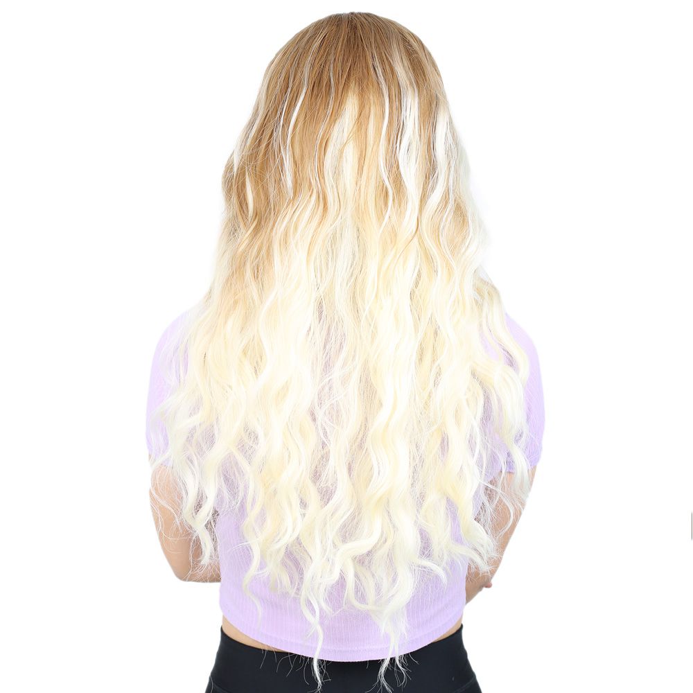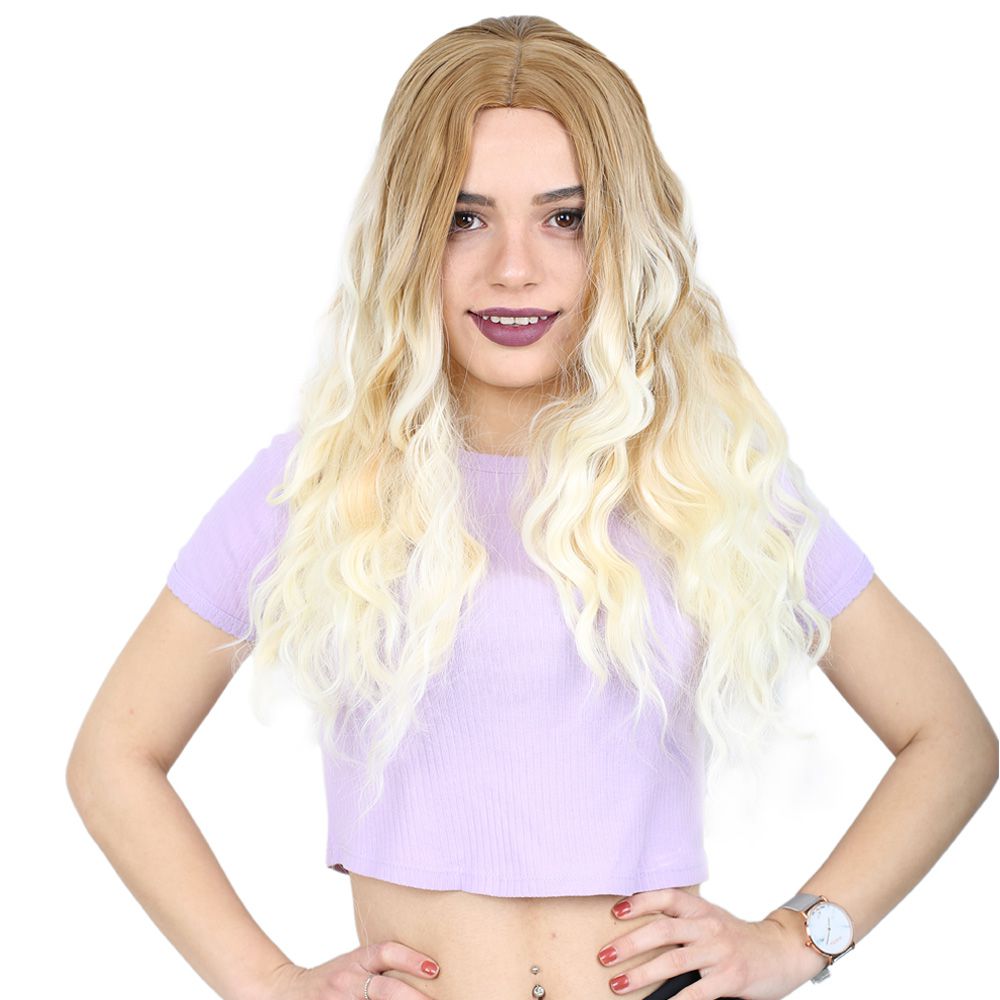 Su Dalgası Uzun Perçemsiz Fiber Sentetik Peruk - Balköpüğü / Platin Ombreli